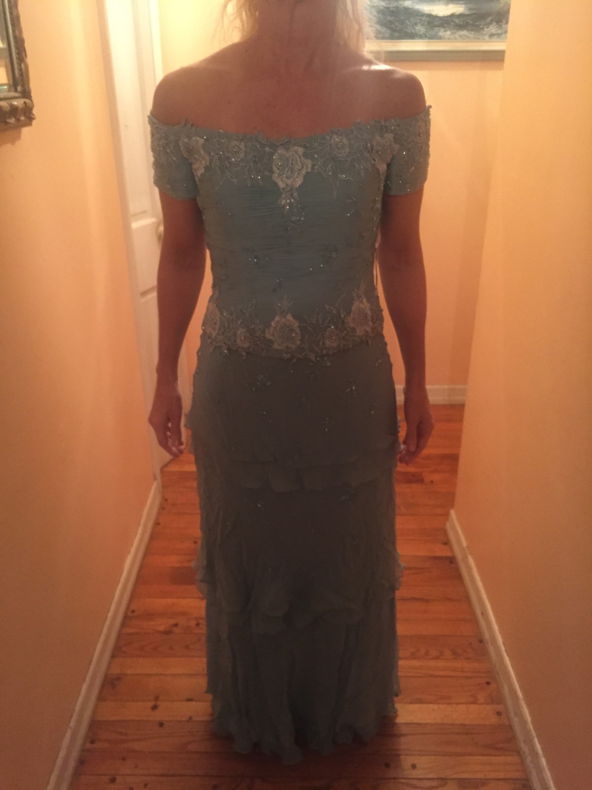 Montage by Mon Cheri Womens Rhinestone/Beaded Powder Blue Gown Size 8