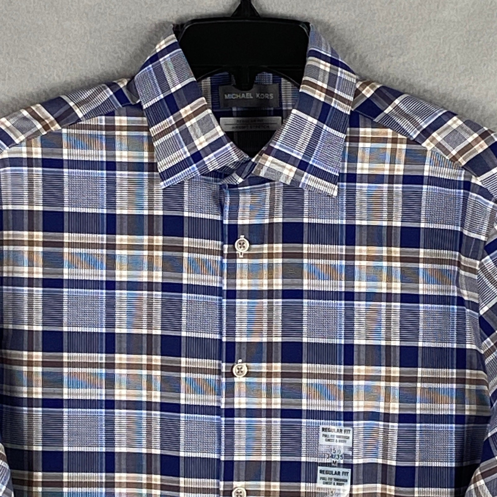 Michael Kors Shirt Men's Medium 15.5 34/35 Regular Fit Airsoft Stretch Plaid NEW