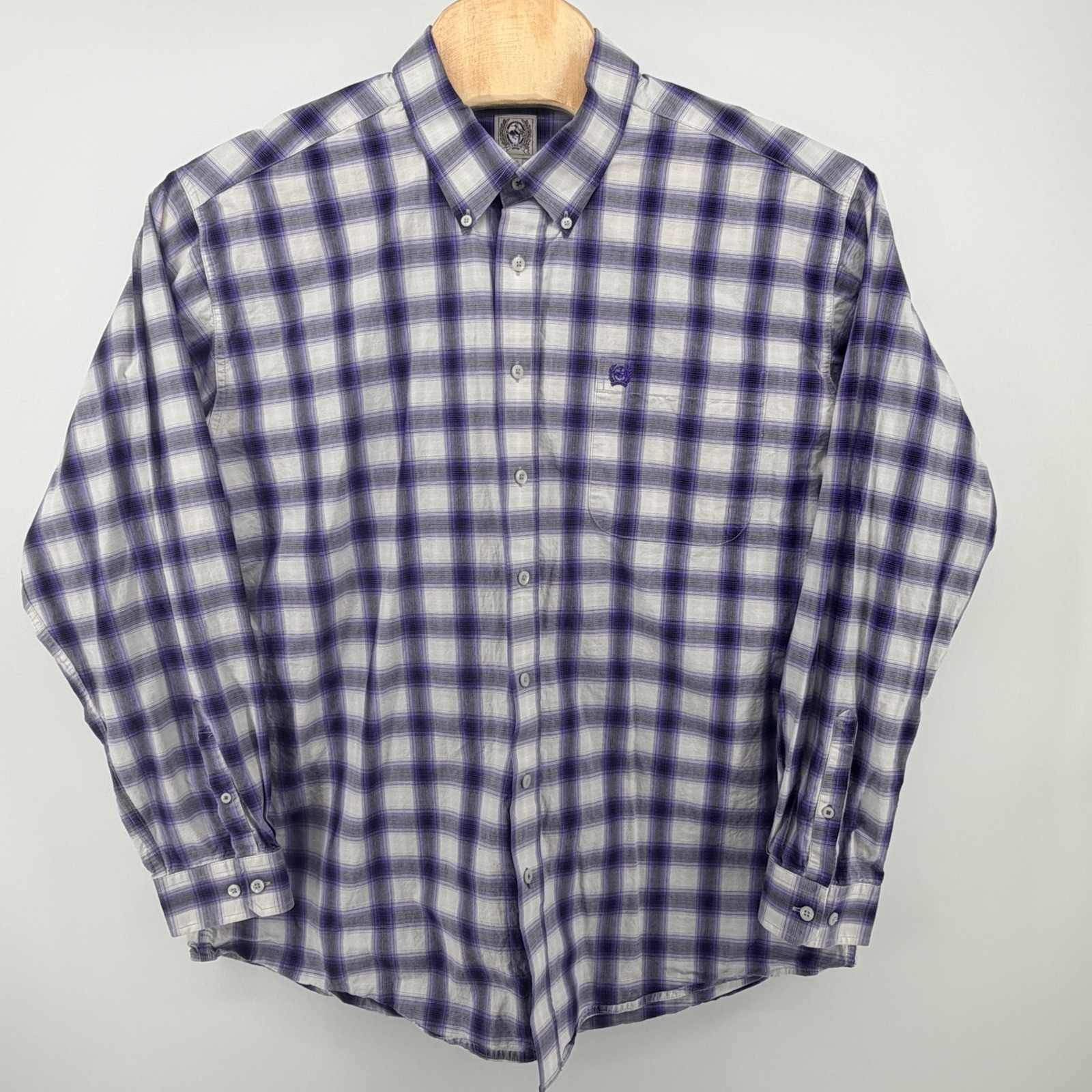 Cinch Mens XL Purple White Plaid Long Sleeve Button Down Western Cotton Shirt