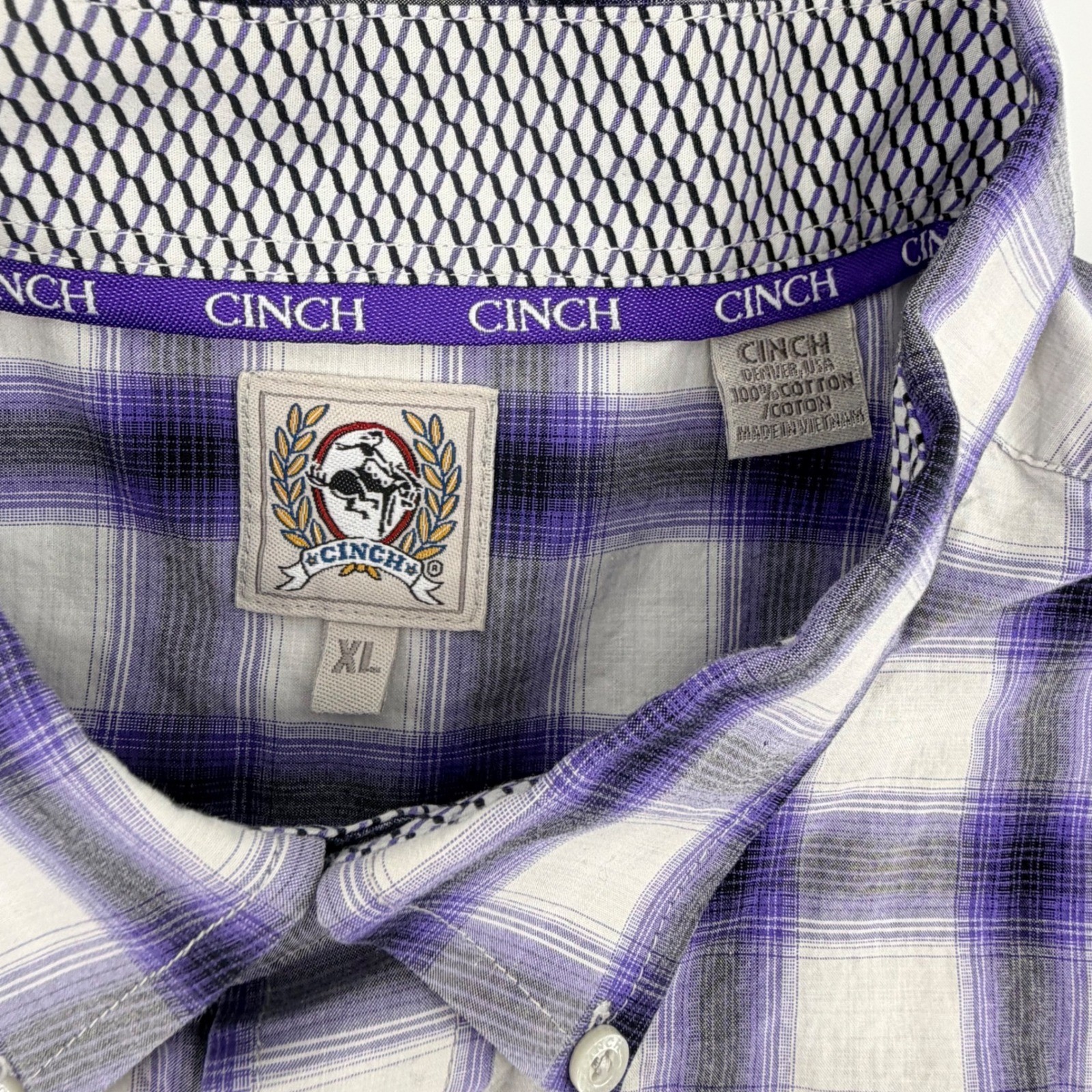 как выглядит Cinch Mens XL Purple White Plaid Long Sleeve Button Down Western Cotton Shirt фото