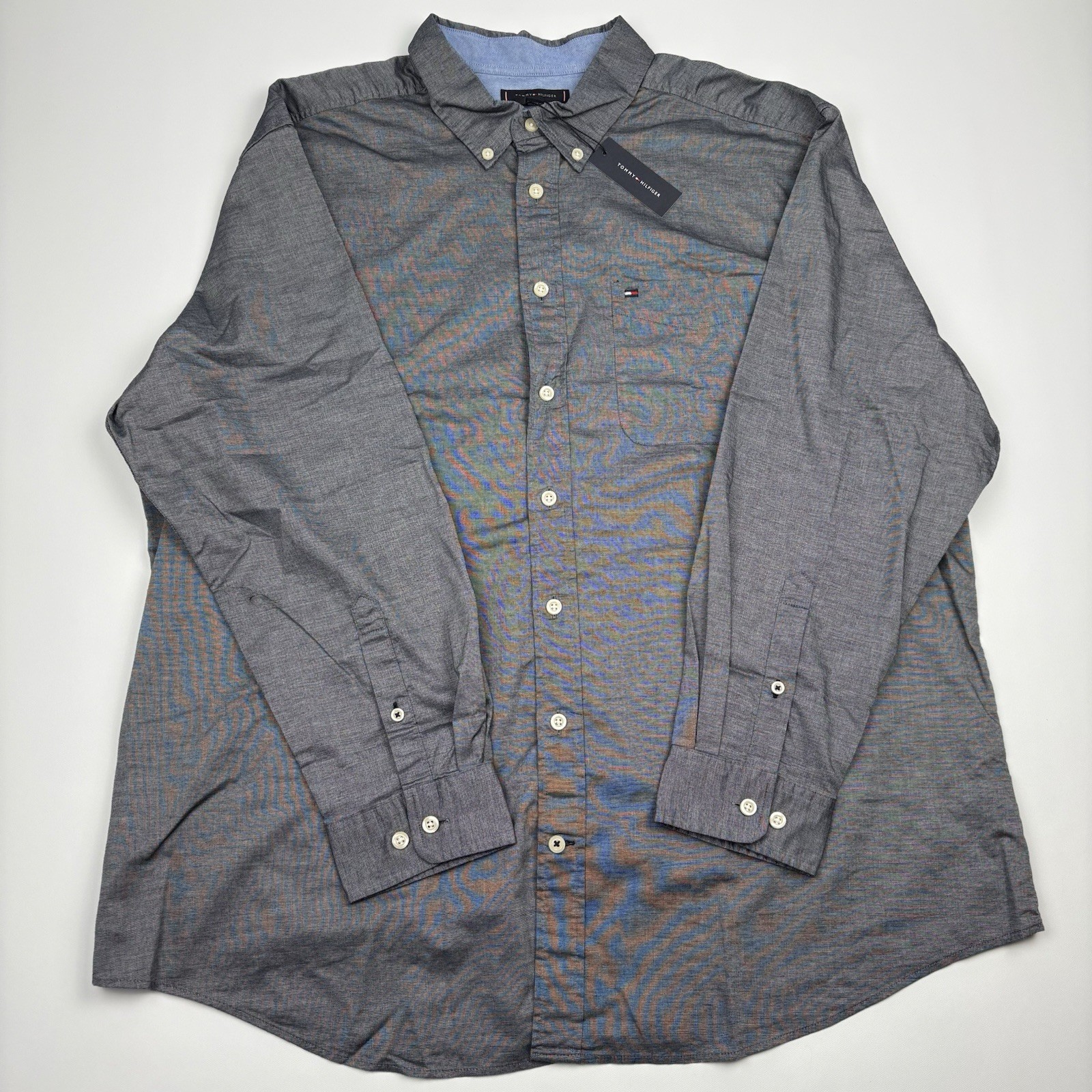 NWT Tommy Hilfiger Men s Classic Fit Flex Shirt 2XL Button Down Gray Stretch