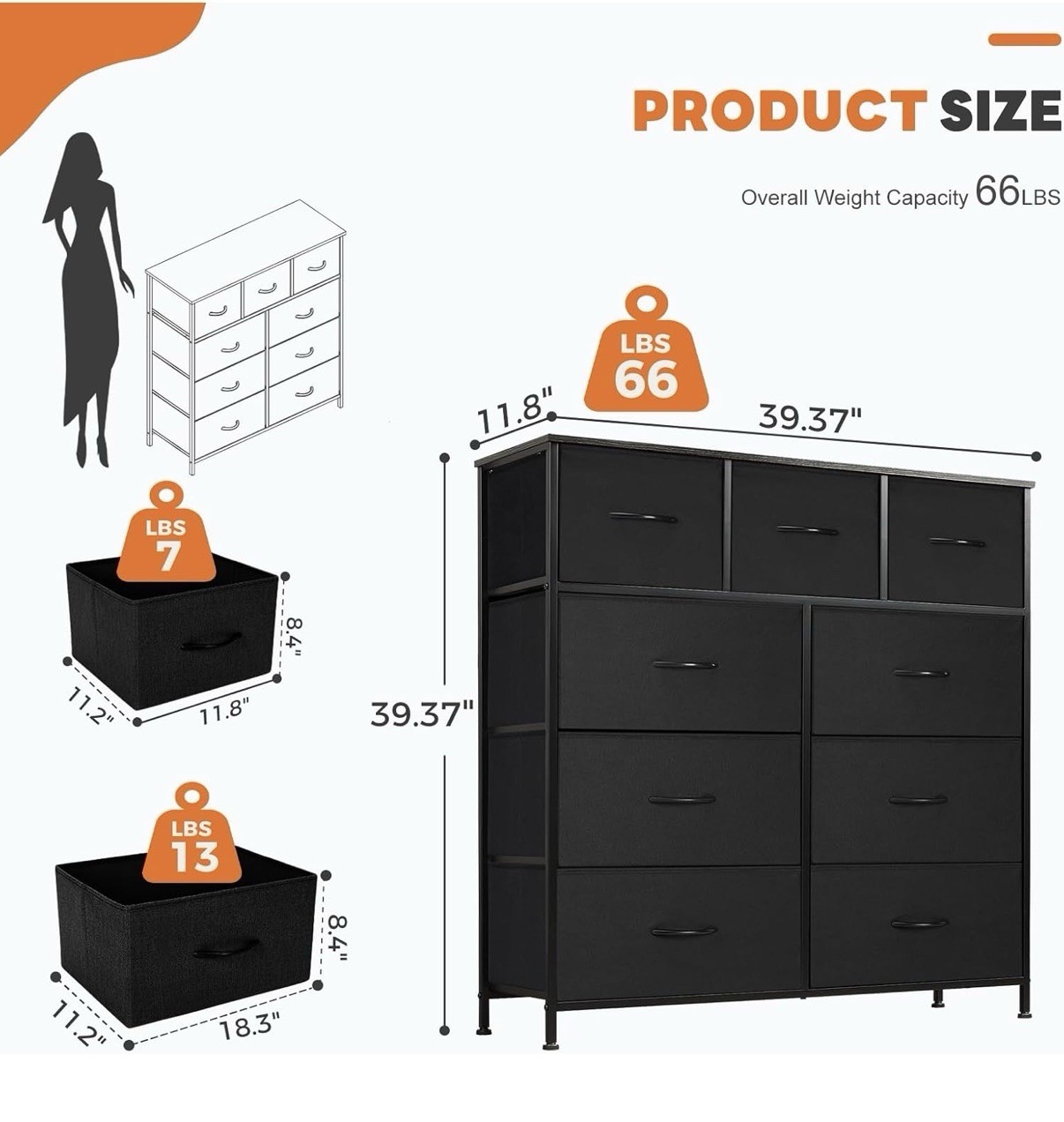 9-Drawer Fabric Dresser w/ Wood Top Metal Frame with Easy Pull Handles