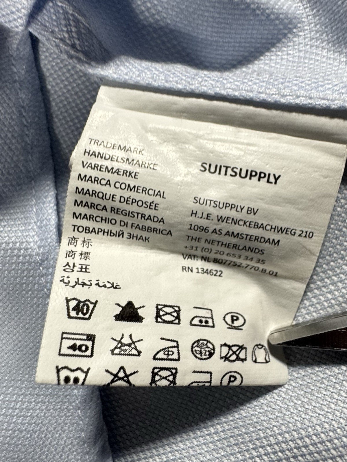 как выглядит Suitsupply Traveller Shirt Mens 38/15 Blue Slim Fit Long Sleeve Button Up фото
