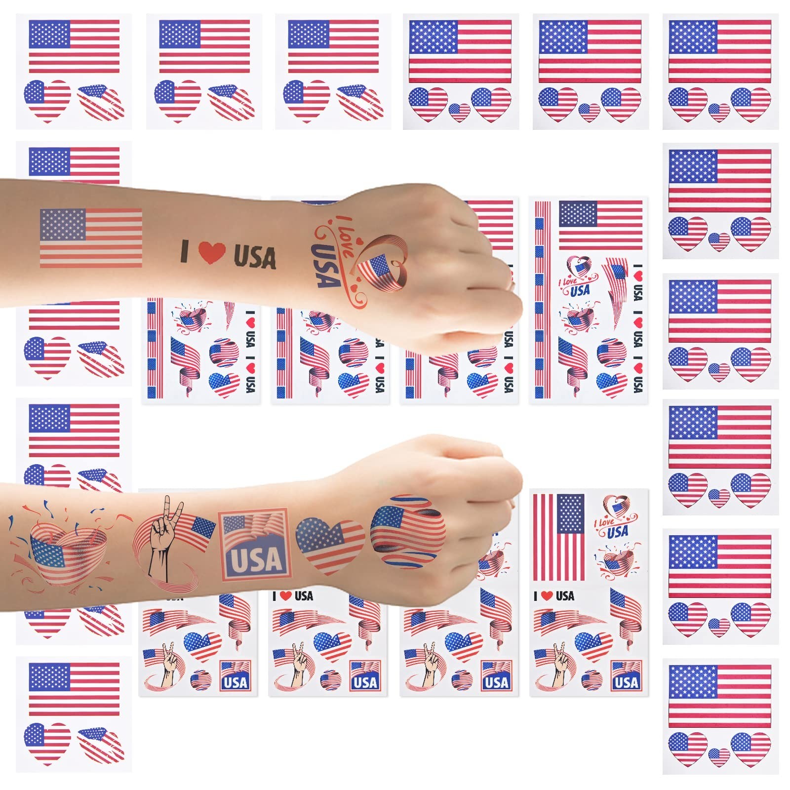 как выглядит AhfuLife 24 Sheets American Flag Temporary Tattoos for USA 250 Years Annivers... фото