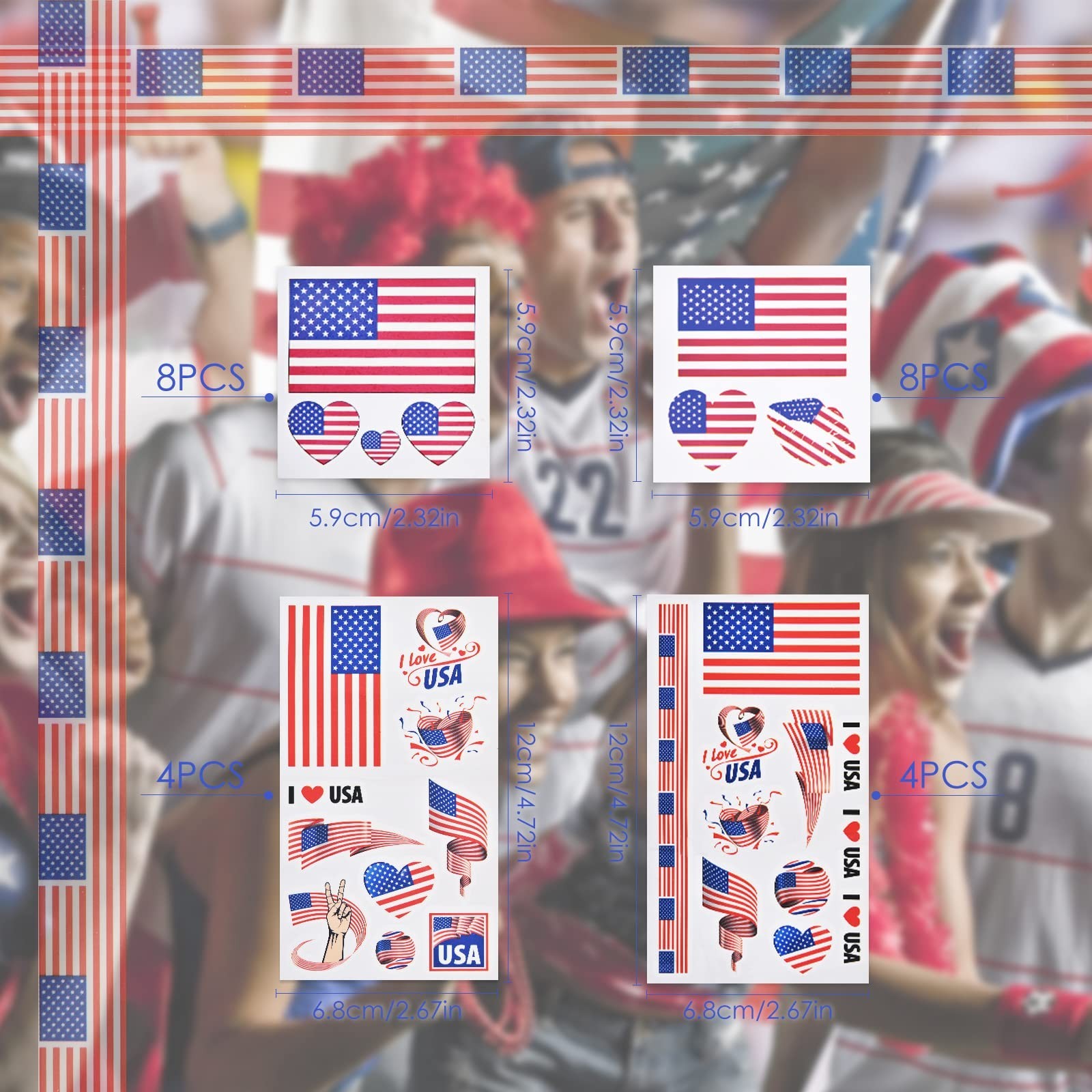 AhfuLife 24 Sheets American Flag Temporary Tattoos for USA 250 Years Annivers...