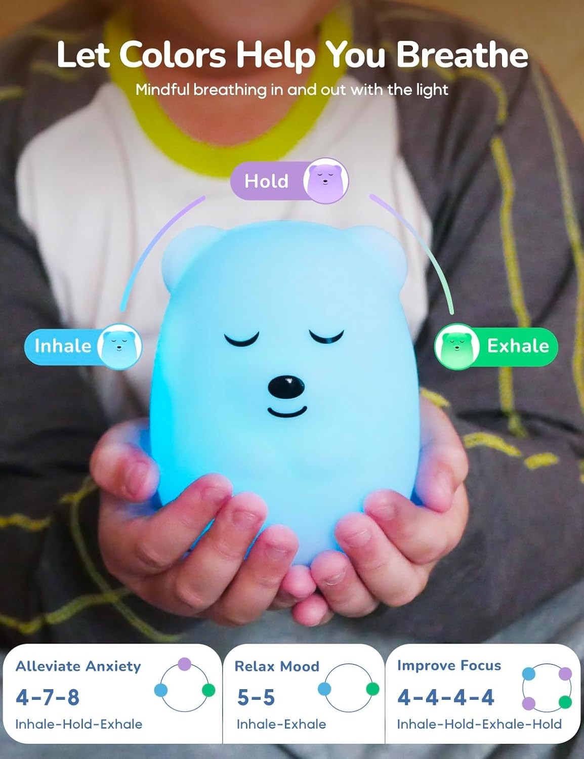 Mindfulness Breathing Light 'Ted' - 3 Modes for Calm Focus, Ages 1 to 101