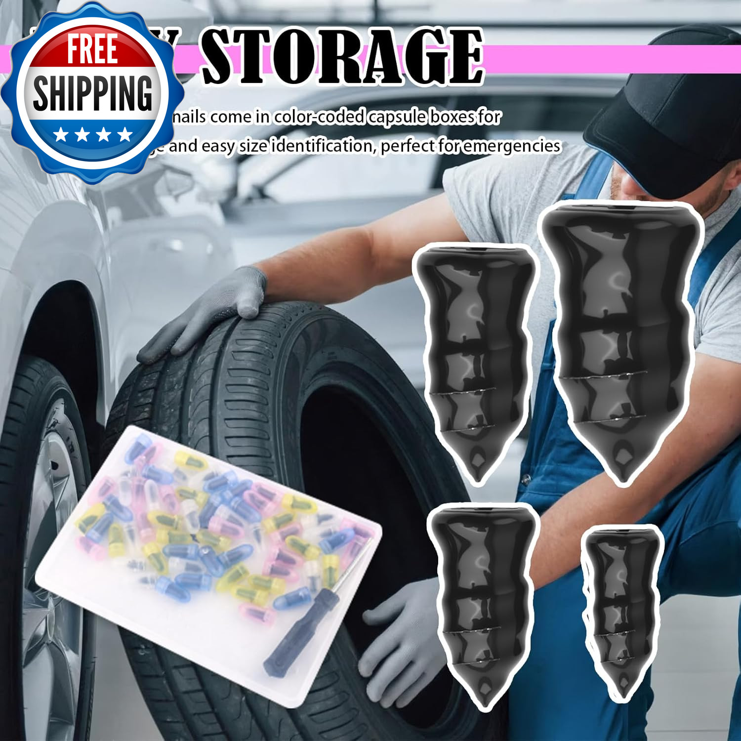 как выглядит 2026 Upgraded 60PCS Screw in Tire Plugs,Self-Service Tire Plugs Kit with Screwdr фото