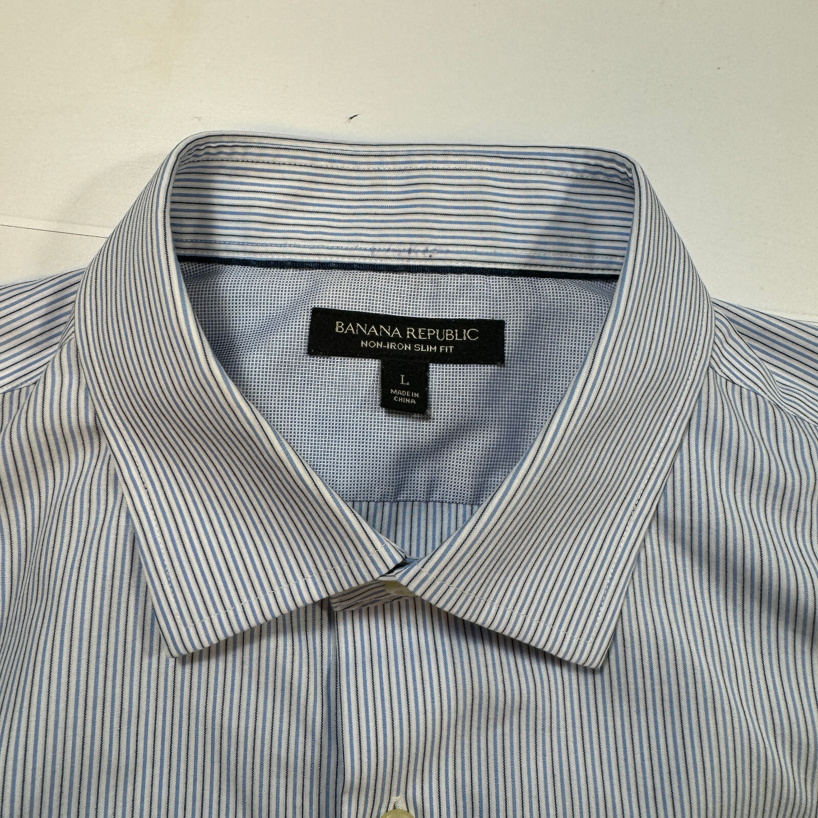 как выглядит Banana Republic Non Iron Slim Fit Mens Size L Blue Striped Cotton Casual Shirt фото