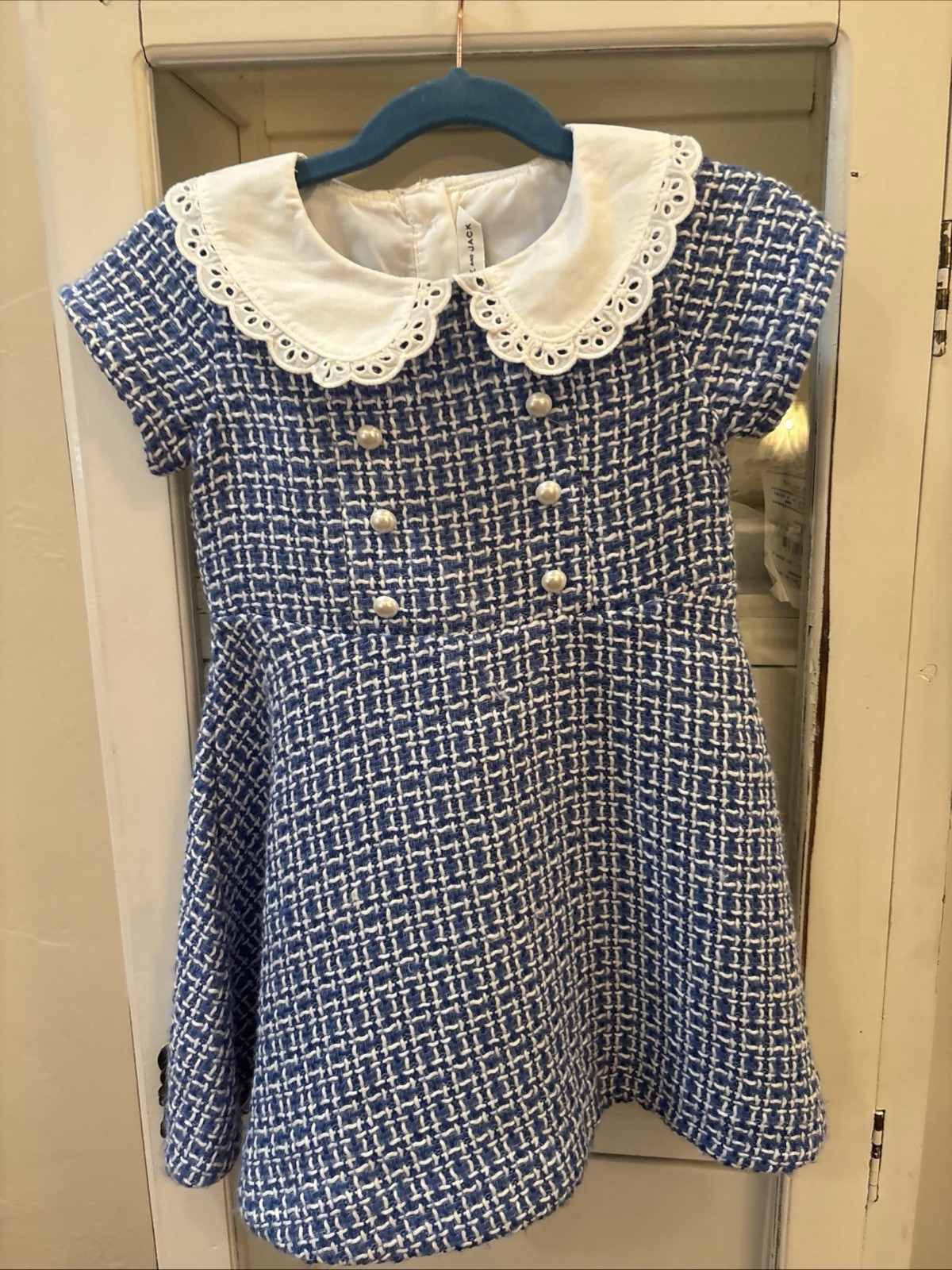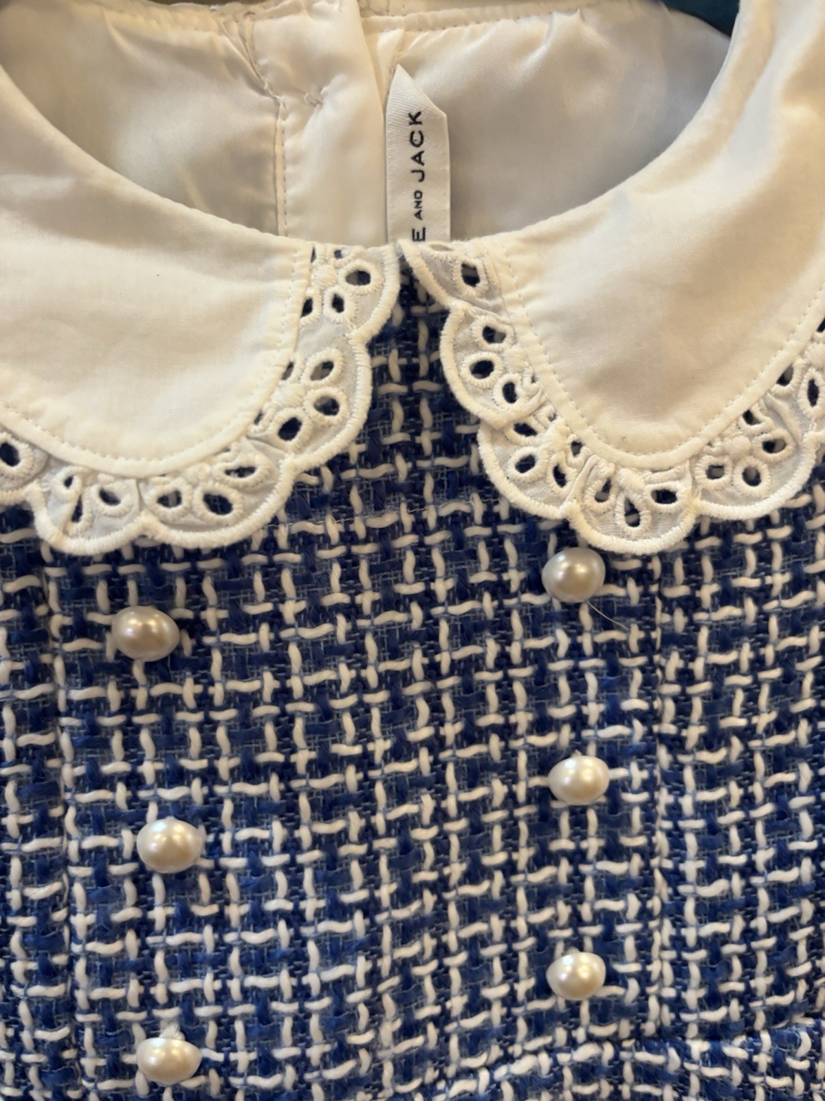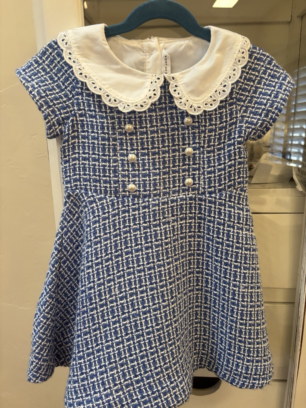 Janie and Jack Tweed Dress in Blue and White Size 3 T Lace and Pearls