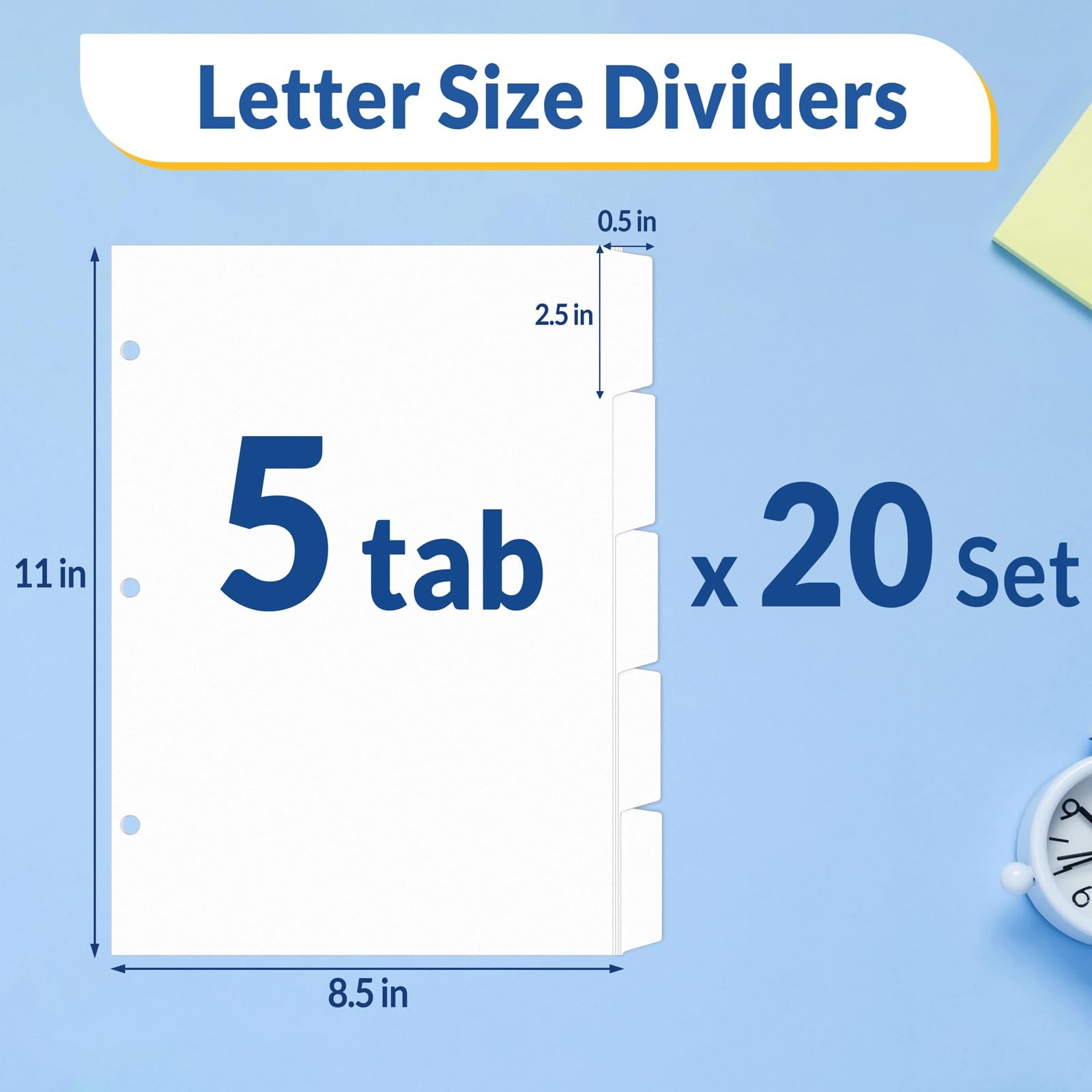 Binder Dividers with Tabs 8.5 x 11 20 Sets 100 Total Page Dividers