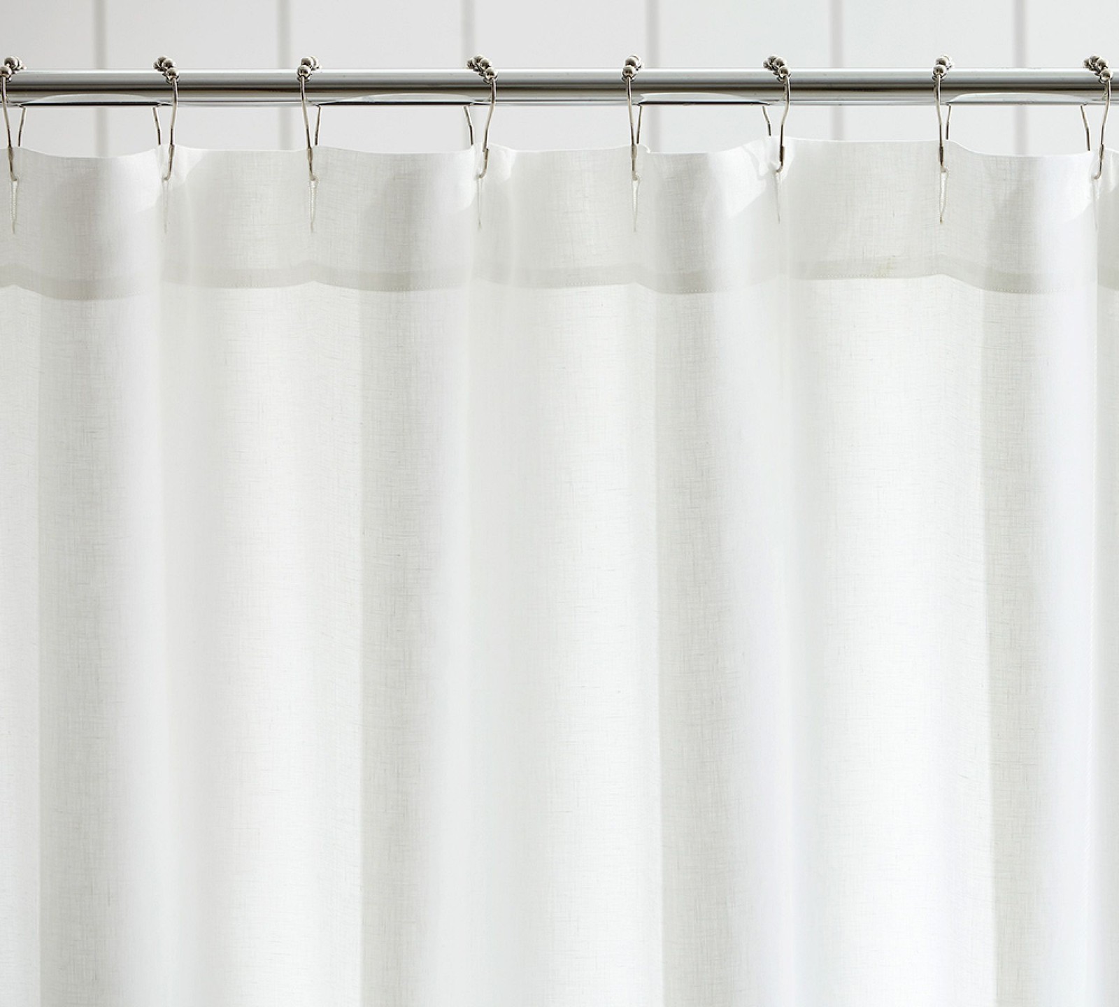 Belgian Flax Linen Hemstitch Shower Curtain - Color: White
