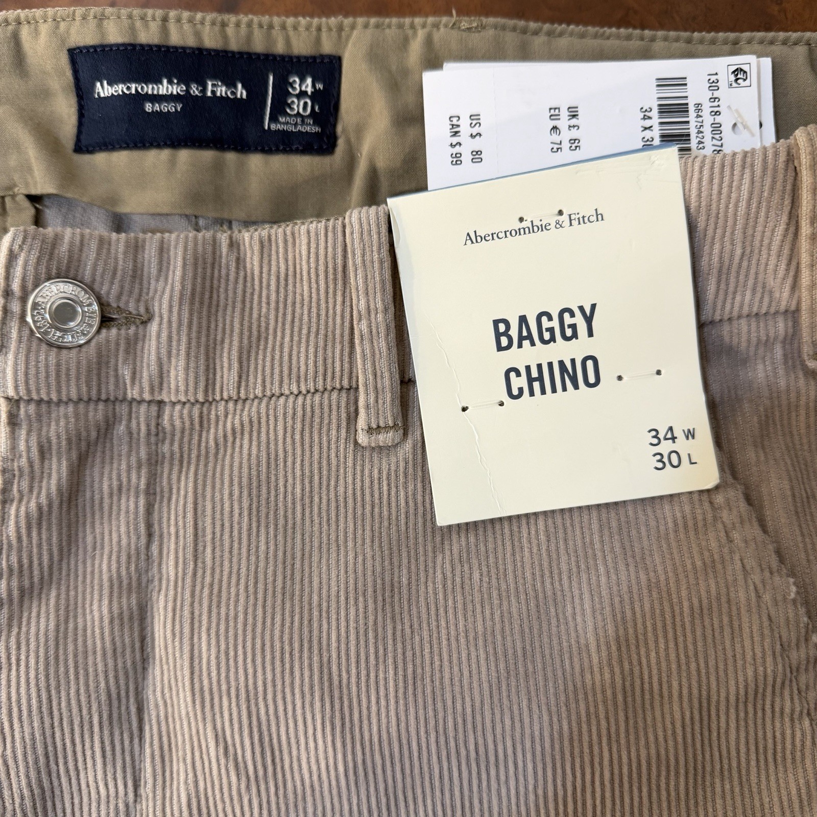 Abercrombie Fitch Baggy Chino Pants Men s 34x30 Beige Khaki New Loose