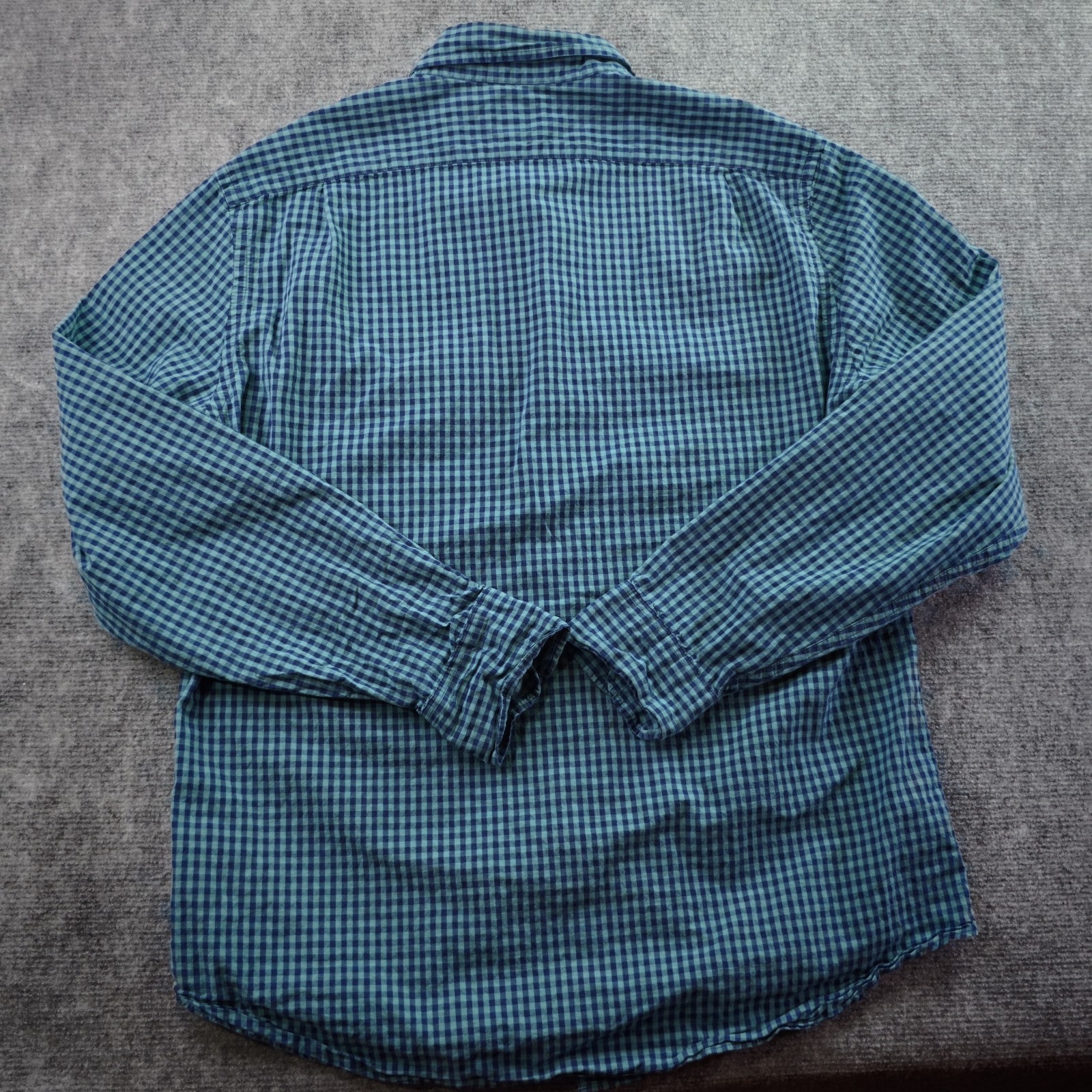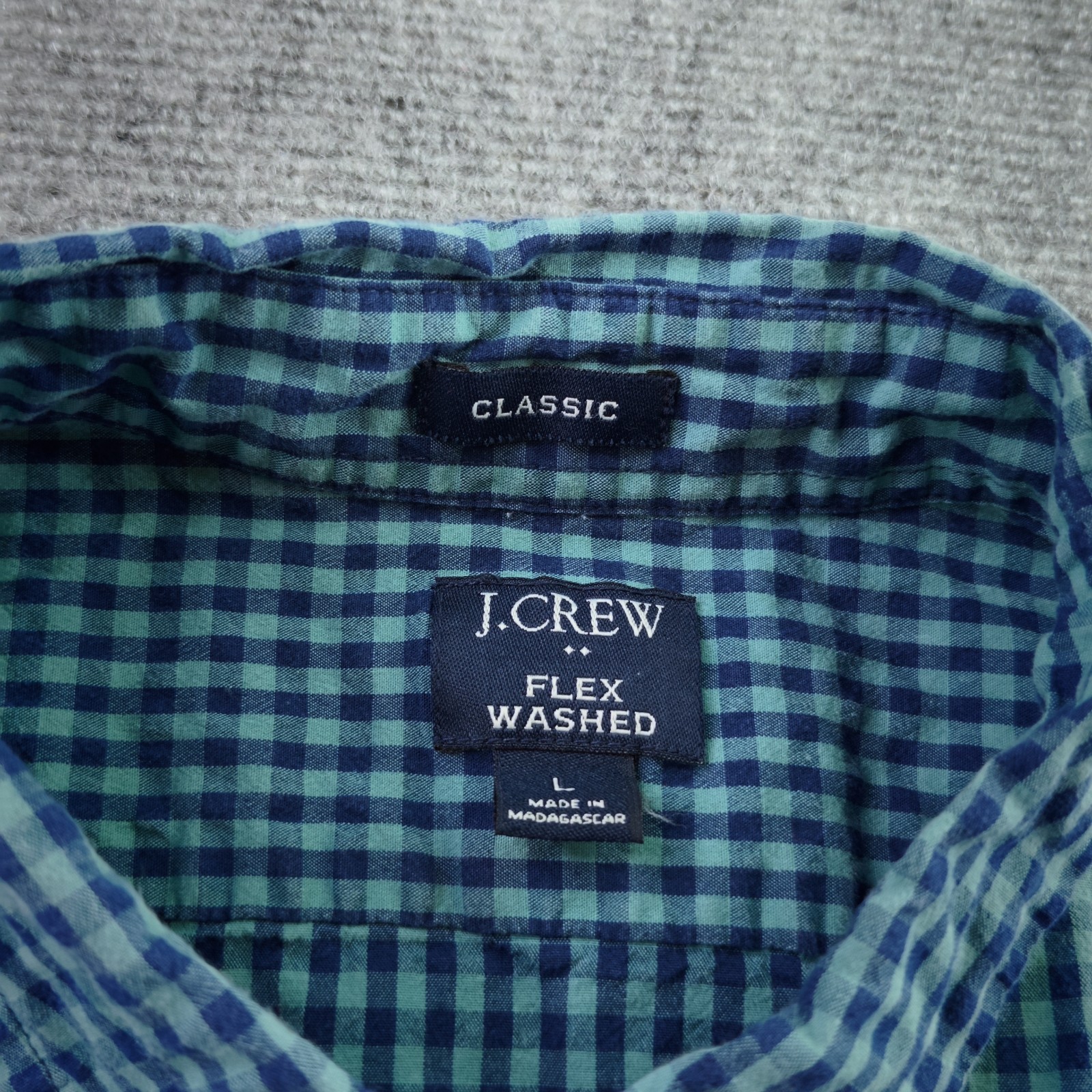 как выглядит J Crew Flex Washed Shirt Large Classic Green Blue Check Long Sleeve Button Down фото