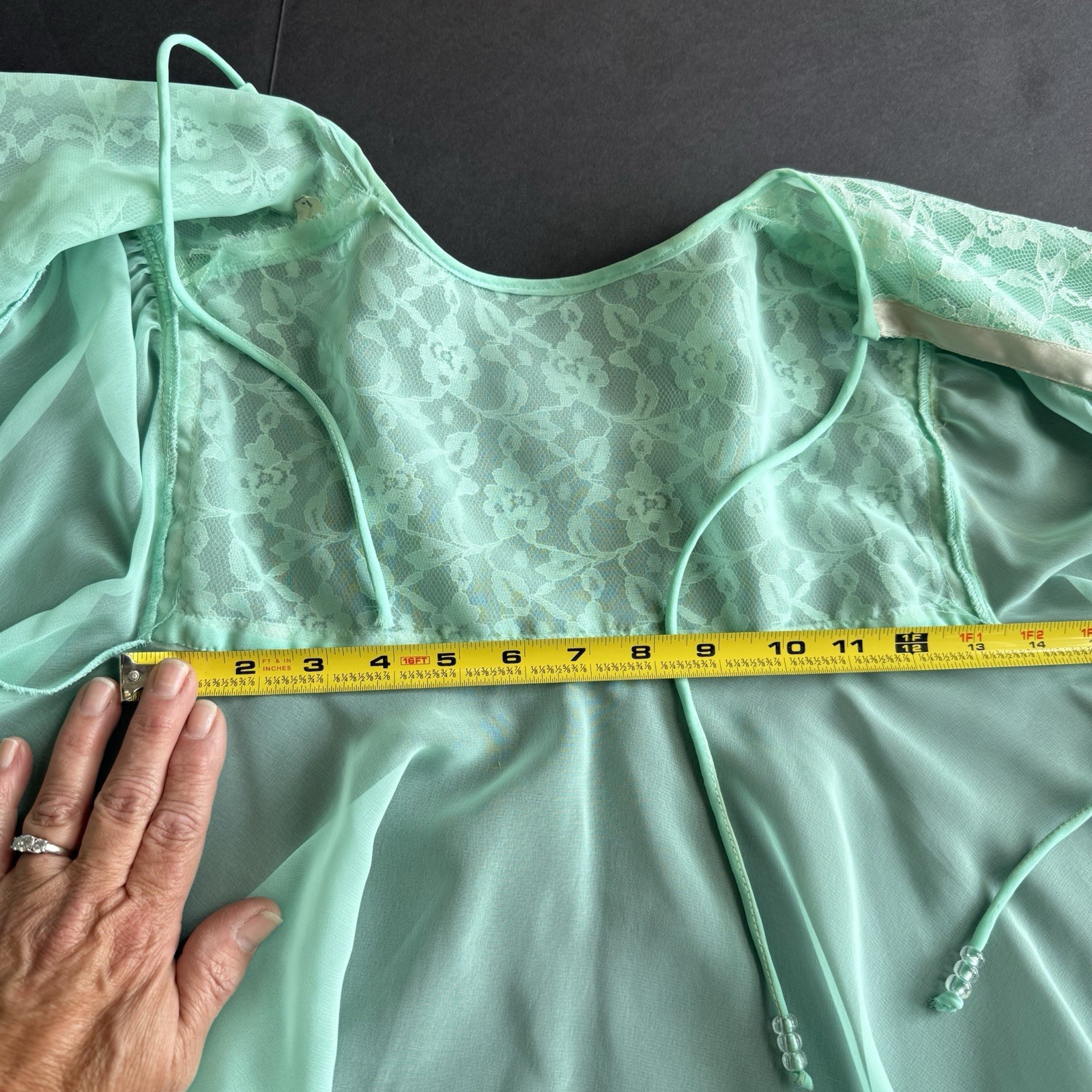 VINTAGE 1970s Mint Green LACE NIGHTGOWN Jacket PEIGNOIR SET Union Made USA