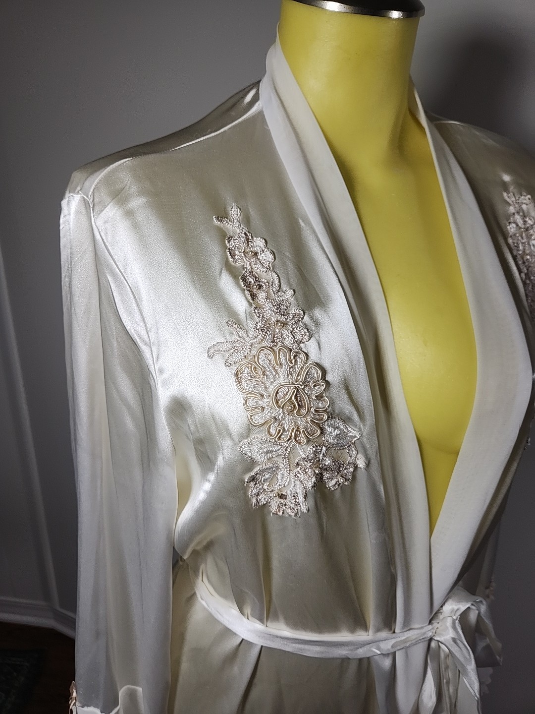 как выглядит Linea Donatella White Satin Sequin Bridal Peignoir Nightgown Robe SZ Large фото