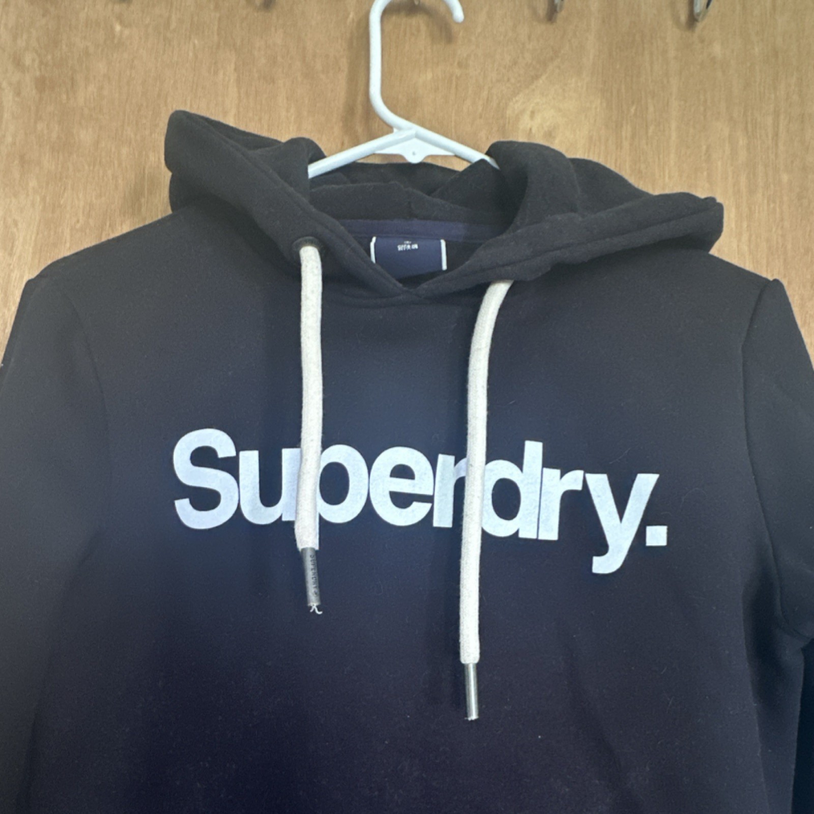 Superdry Women's Pullover Hoodie Black US 6 Logo Accent Long Sleeve Crew Neck