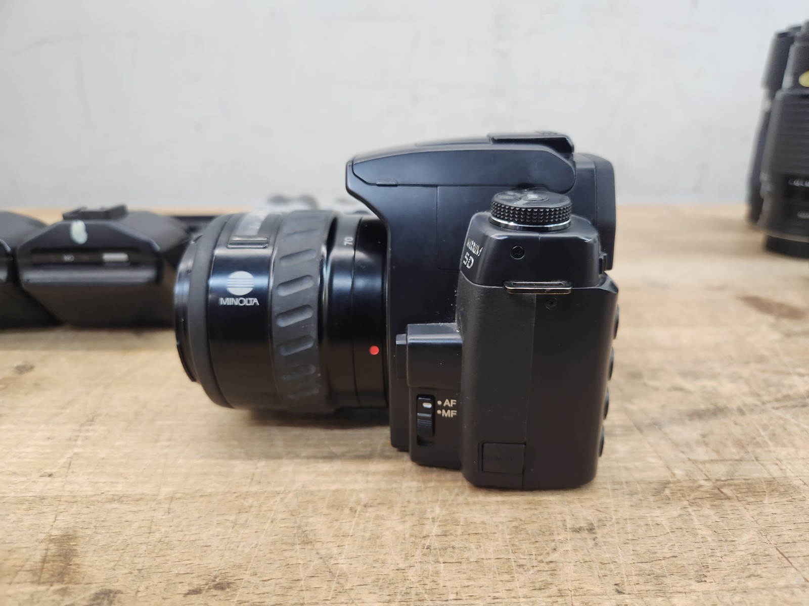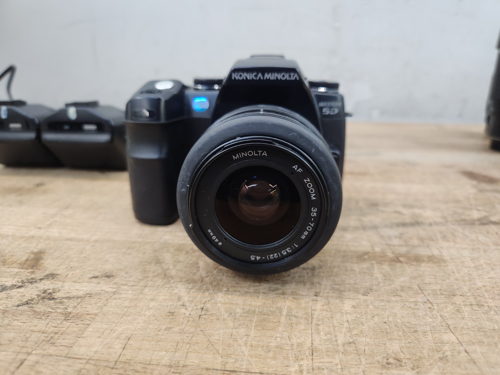 Vintage Konica Minolta Maxxum 5D Bundle w/ Extra Batteries, Lenses, Flash, etc.