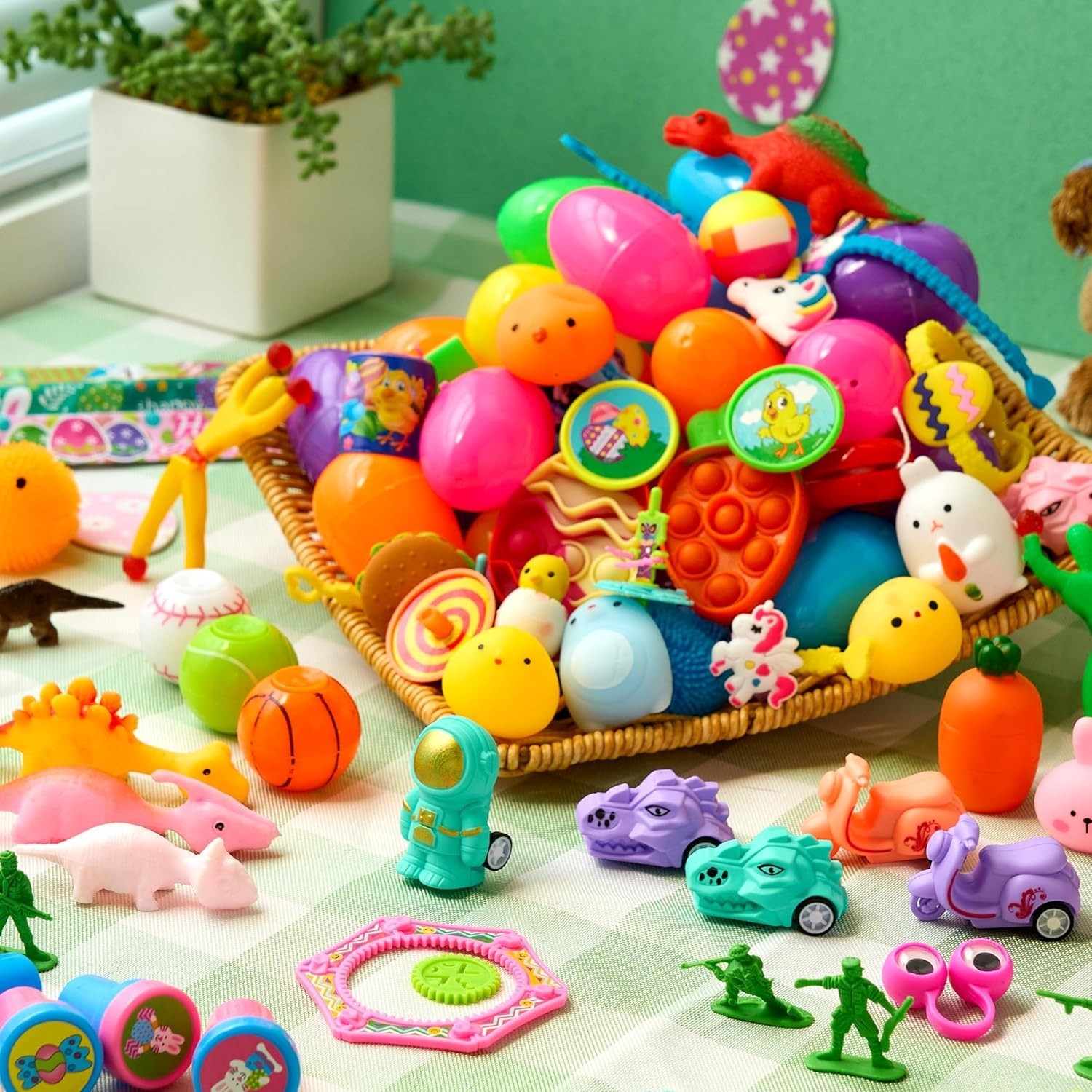 100 PCS Prefilled Easter Eggs with Fun Toy Assortment - Perfect for Kids' Hunts