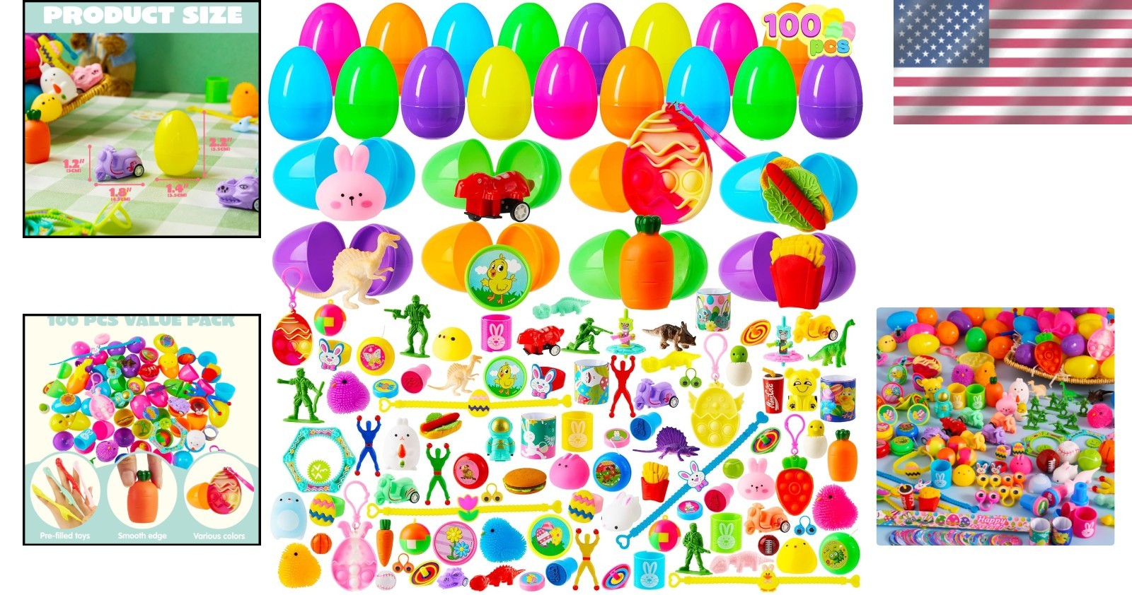 • 100 PCS Prefilled Easter Eggs with Fun Toy Assortment - Perfect for Kids' Hunts