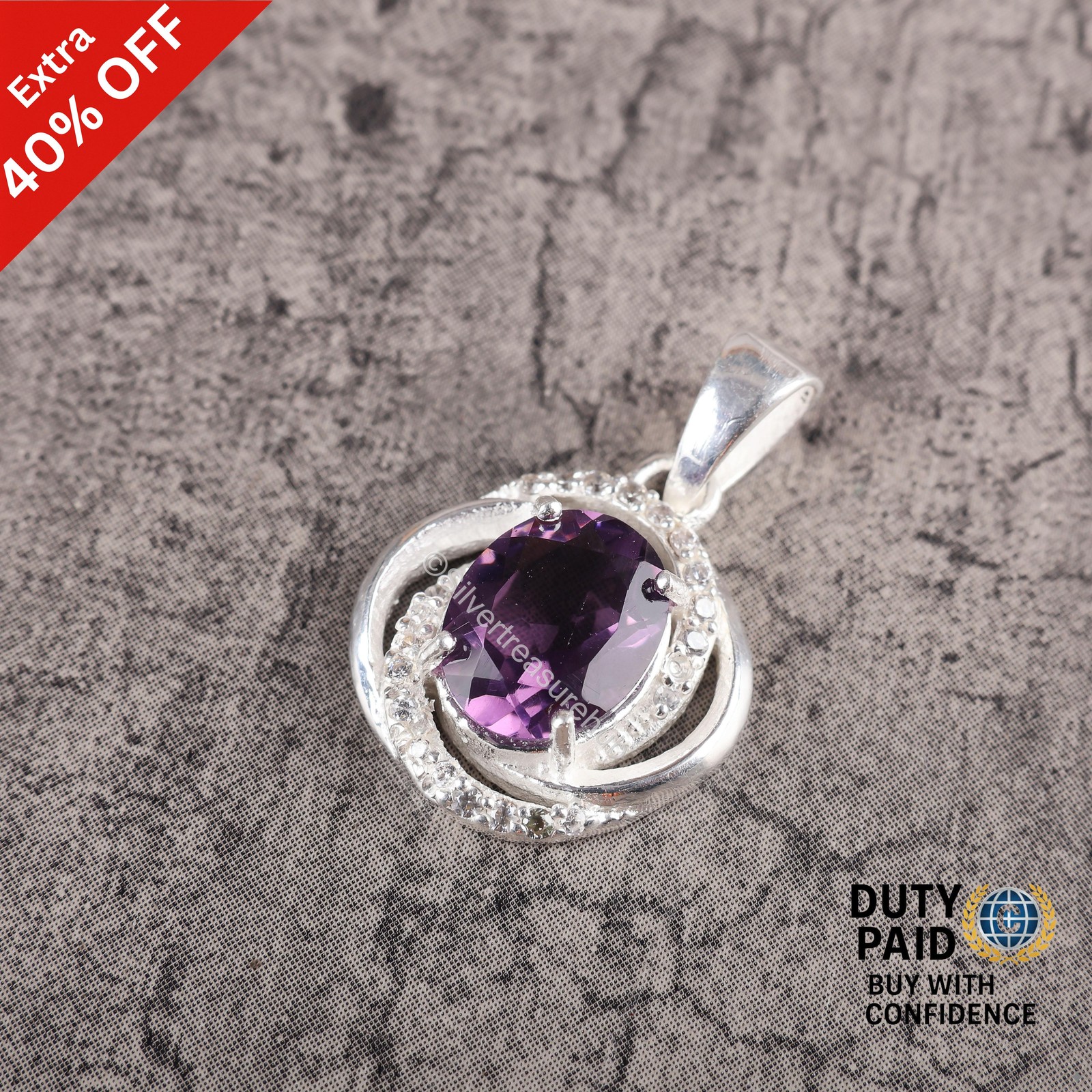 как выглядит Oval Natural Amethyt Cz Sister Handcrafted Birthday Pendant Jewelry 925 Silver фото