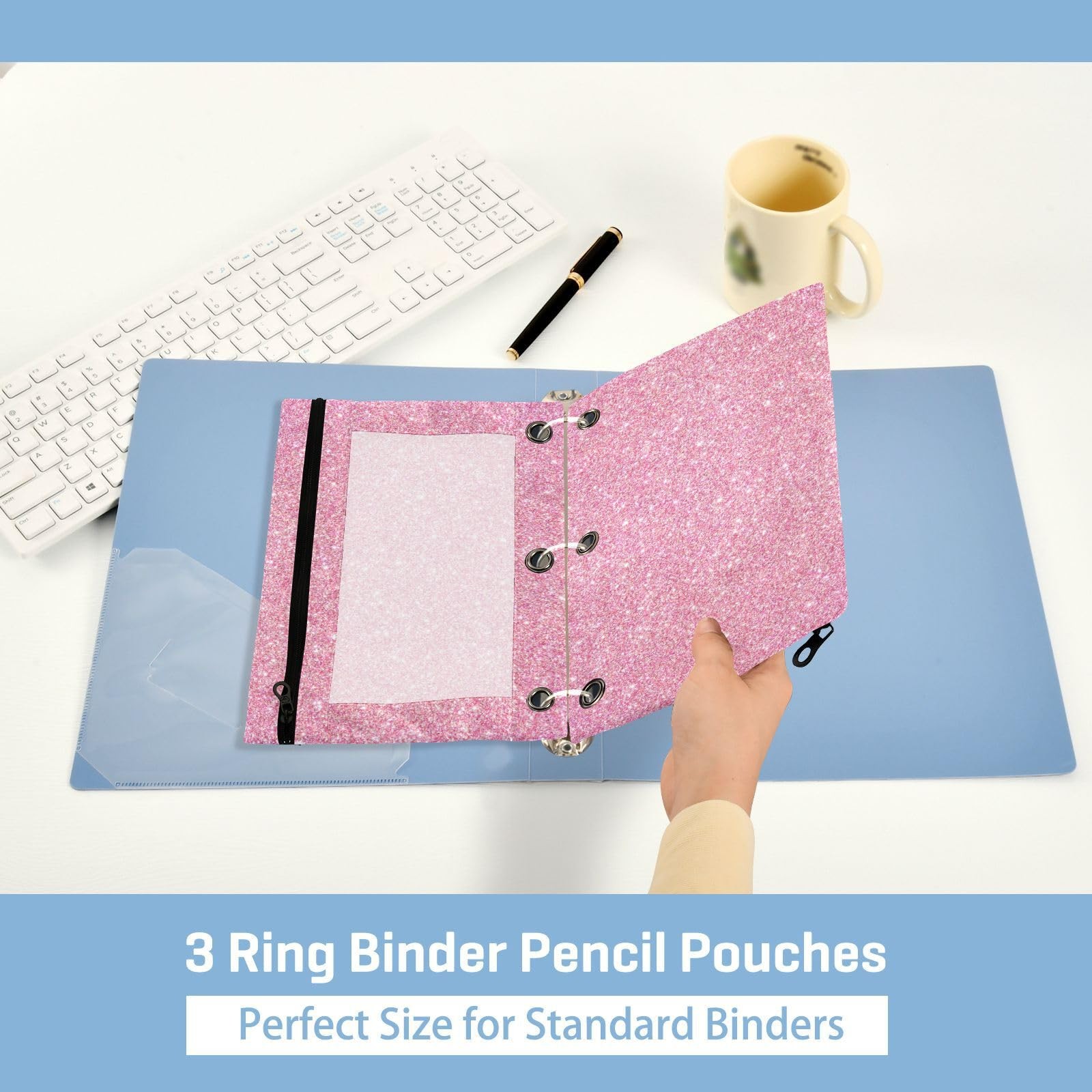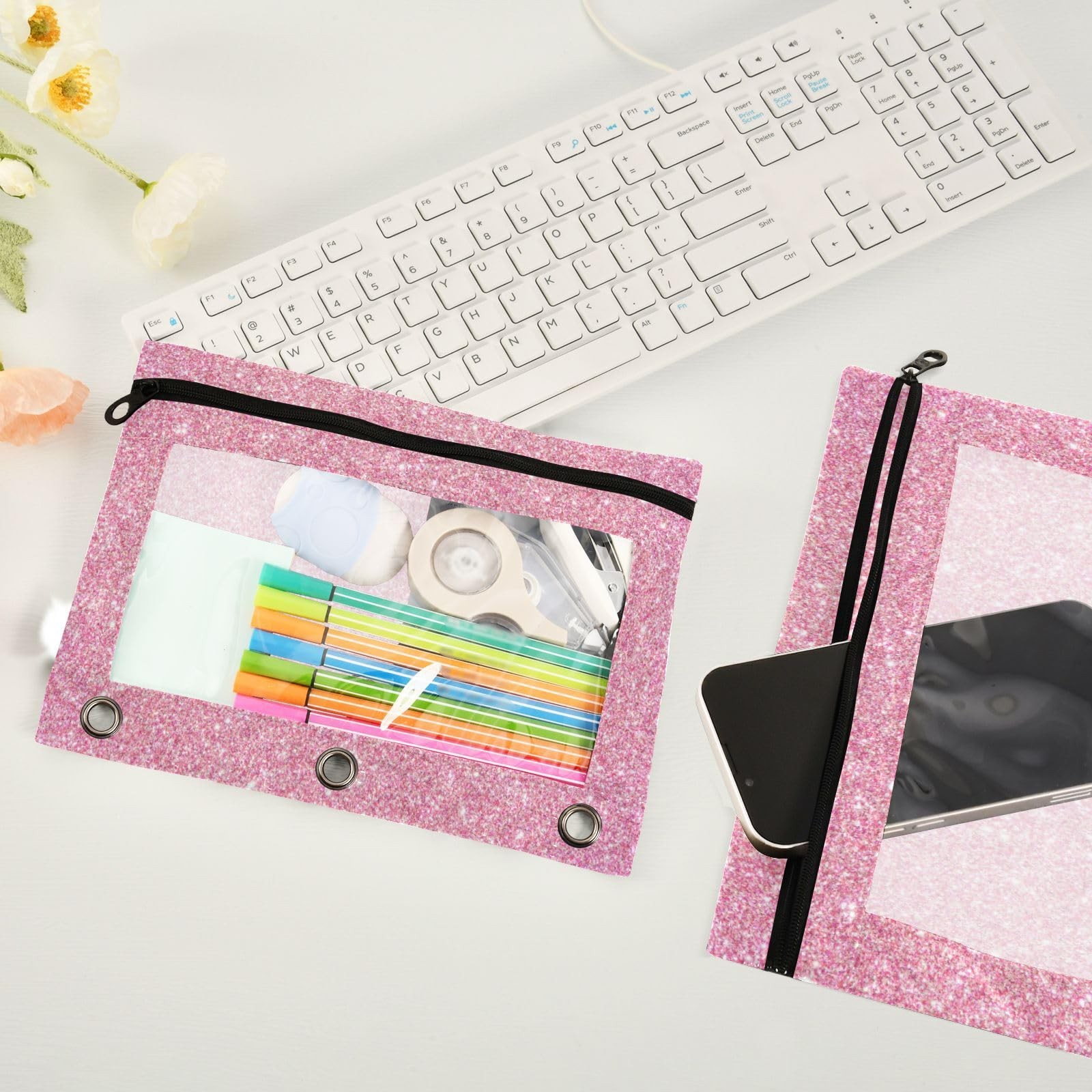 Pencil Pouch for 3 Ring Binder, Pink Glitter Binder Pouches with Zipper Bulk,...