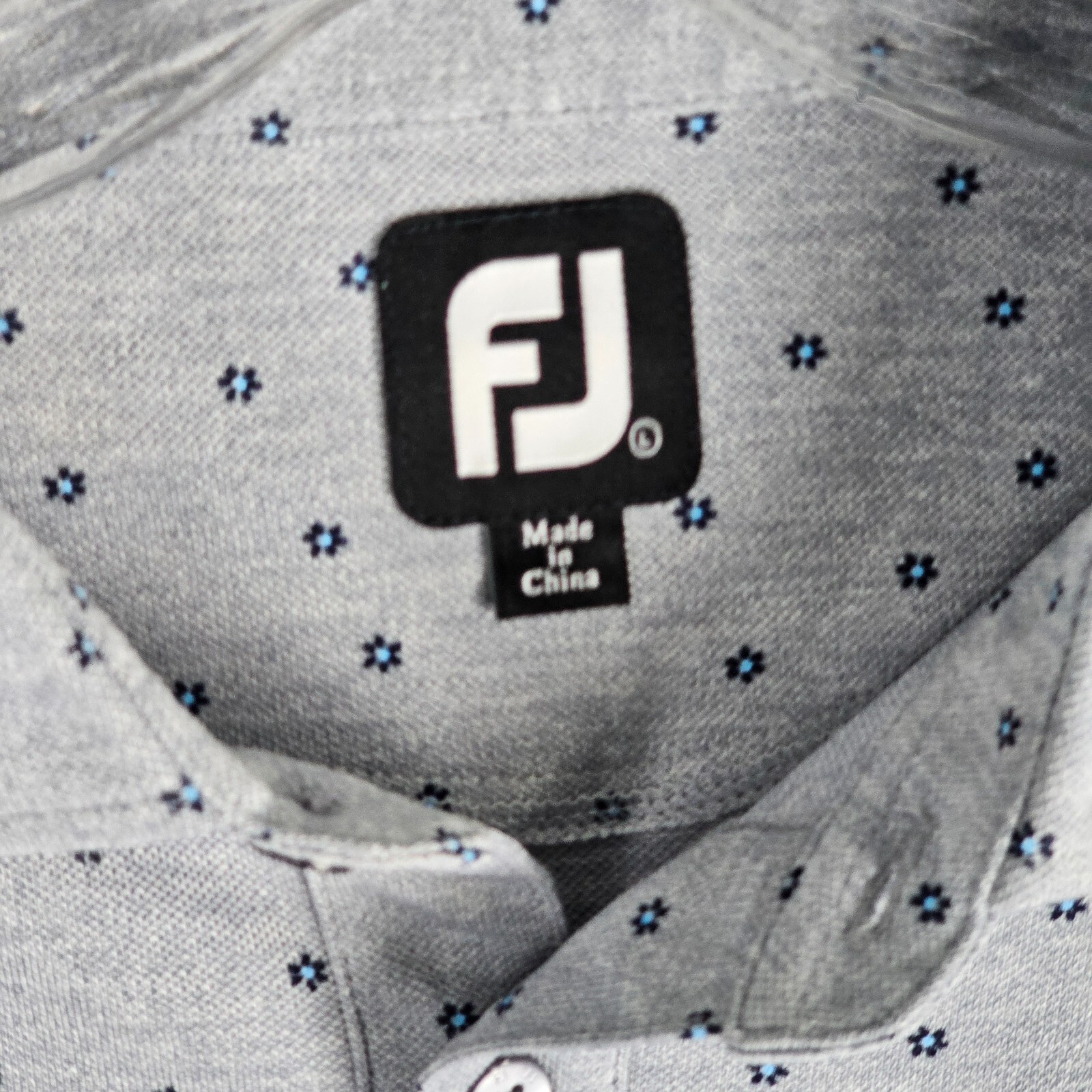 Footjoy Polo Shirt Large Gray Pique AOP Flower Stretch Golf Short Sleeve 25527