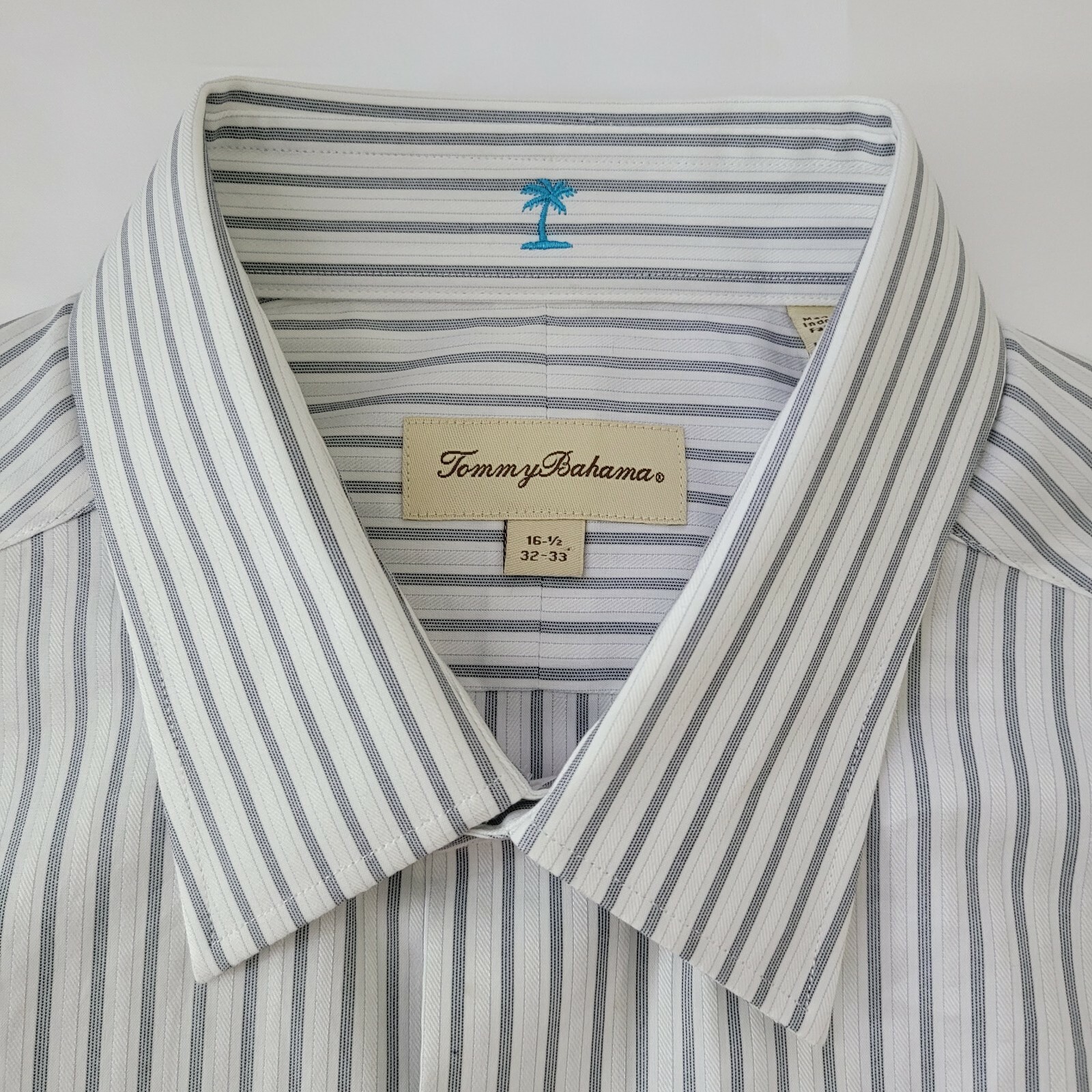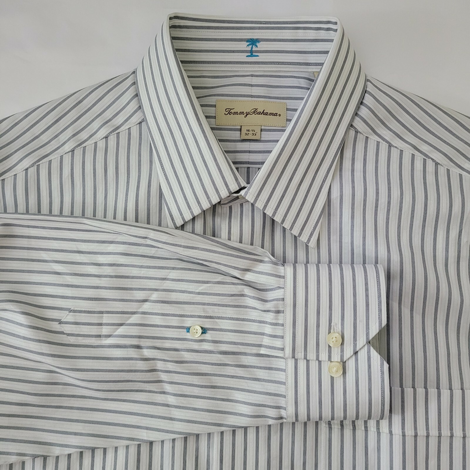Tommy Bahama Men's Size 16.5-32/33 White Stripe Cotton Long Sleeve Dress Shirt