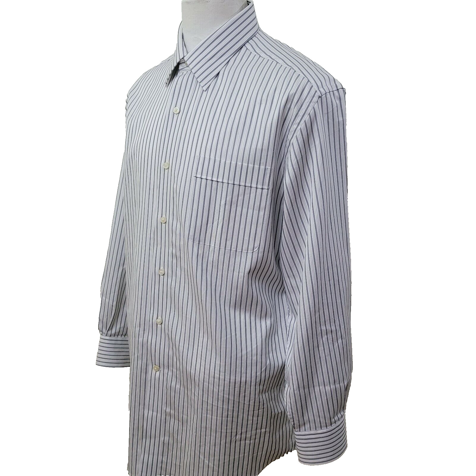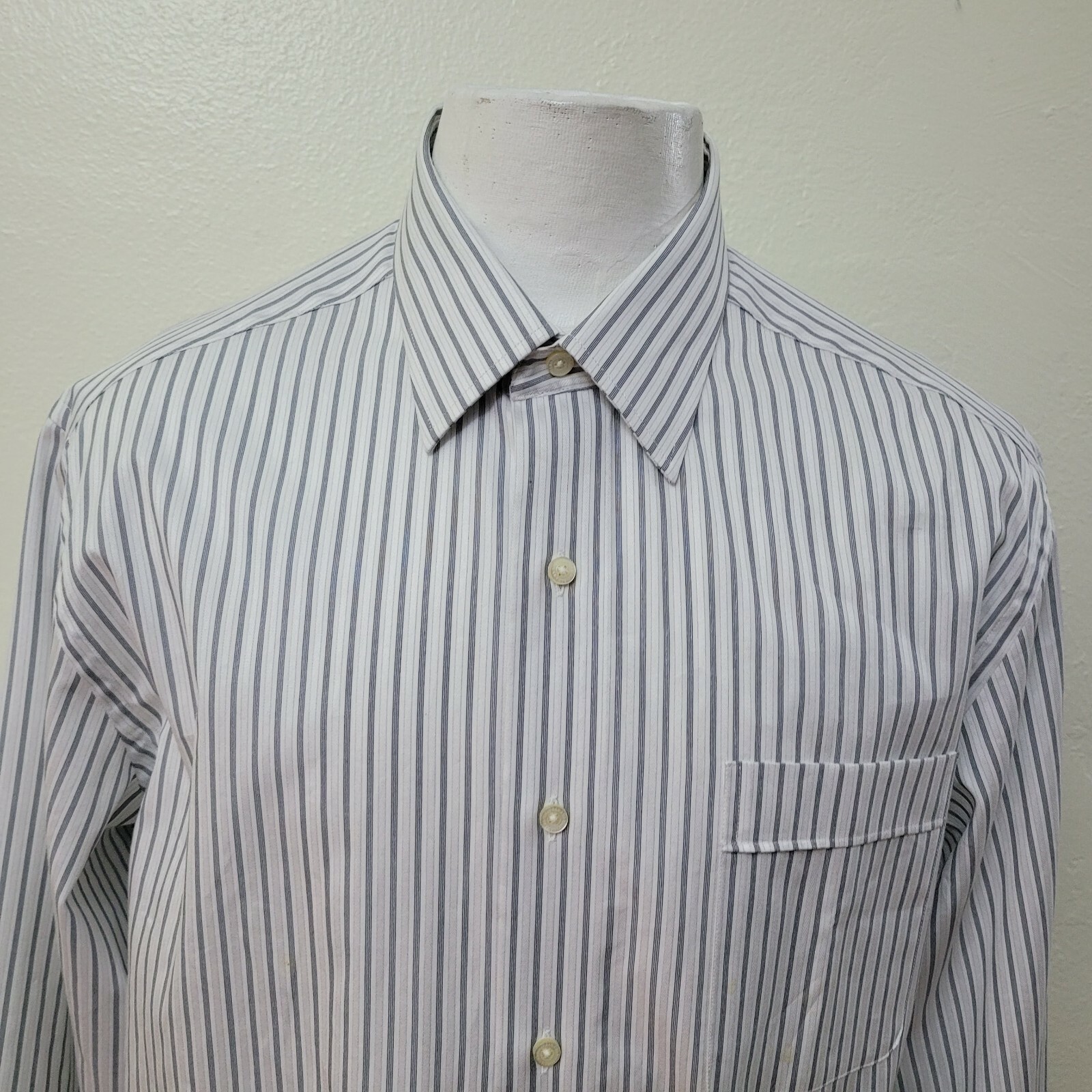 как выглядит Tommy Bahama Mens Size 16.5-32/33 White Stripe Cotton Long Sleeve Dress Shirt фото