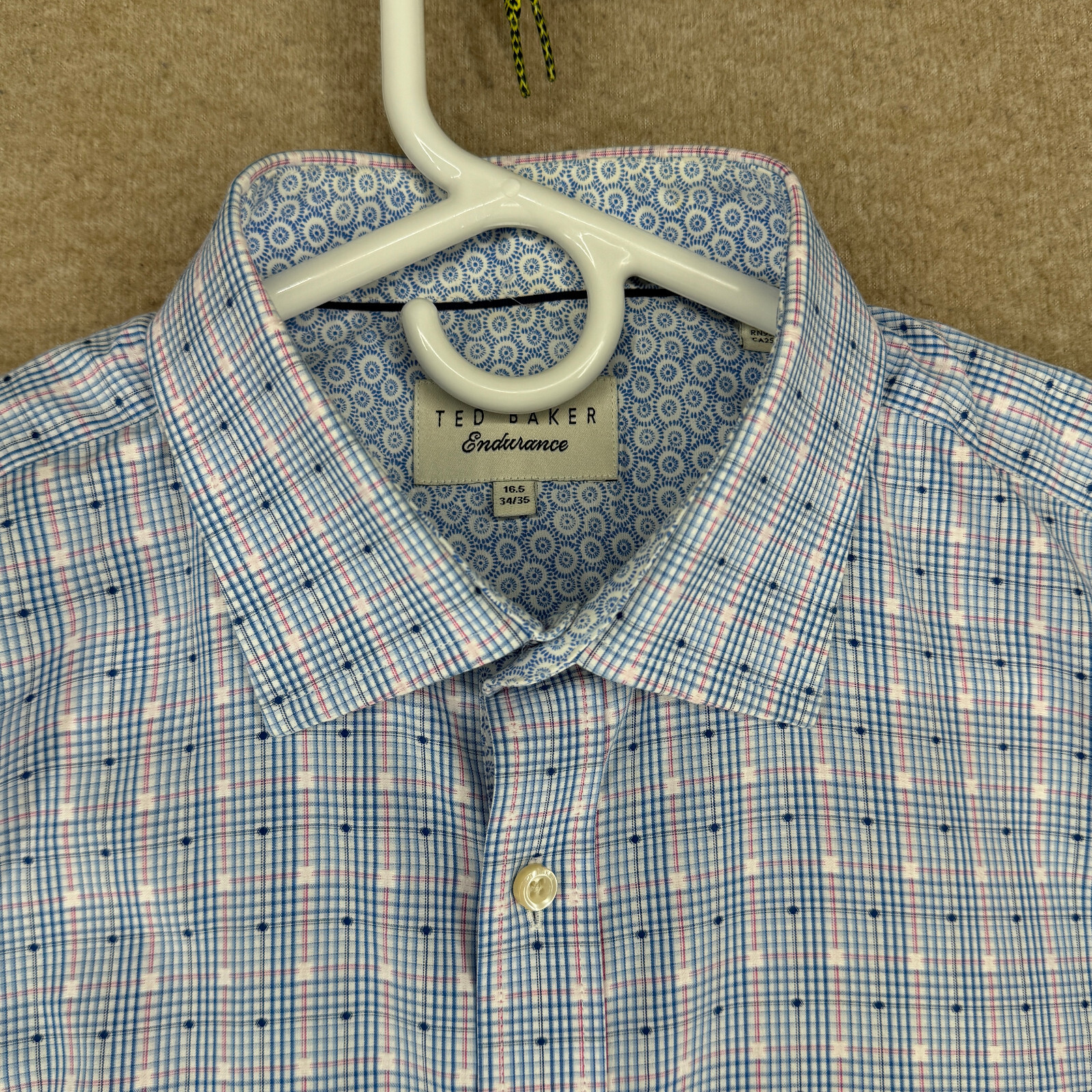 как выглядит Ted Baker Endurance Mens Size 16.5-33/34 Blue Check Flip Cuffs Casual Shirt фото