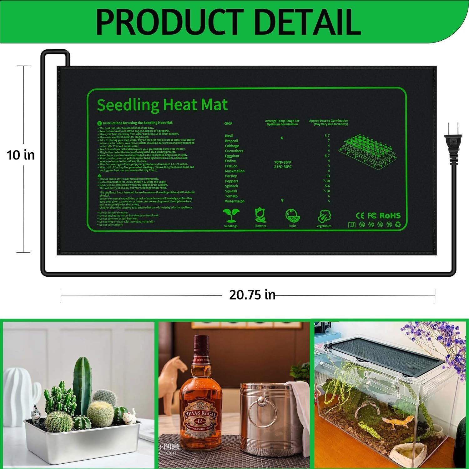 Consistent Heating 2 Pack Seedling Heat Mat 10 x 20.75 - Ideal for Germination
