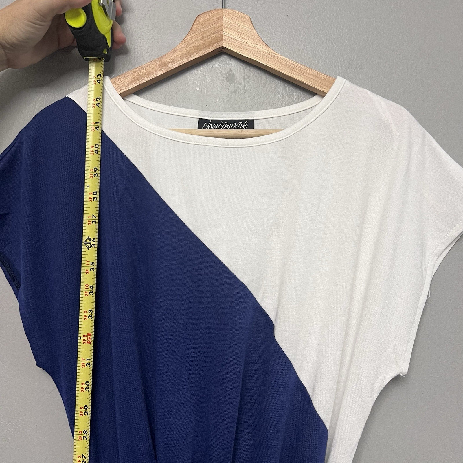 как выглядит VTG Mod Colorblock Batwing Belted Dress White/Navy Disco Nautical Size 18 фото