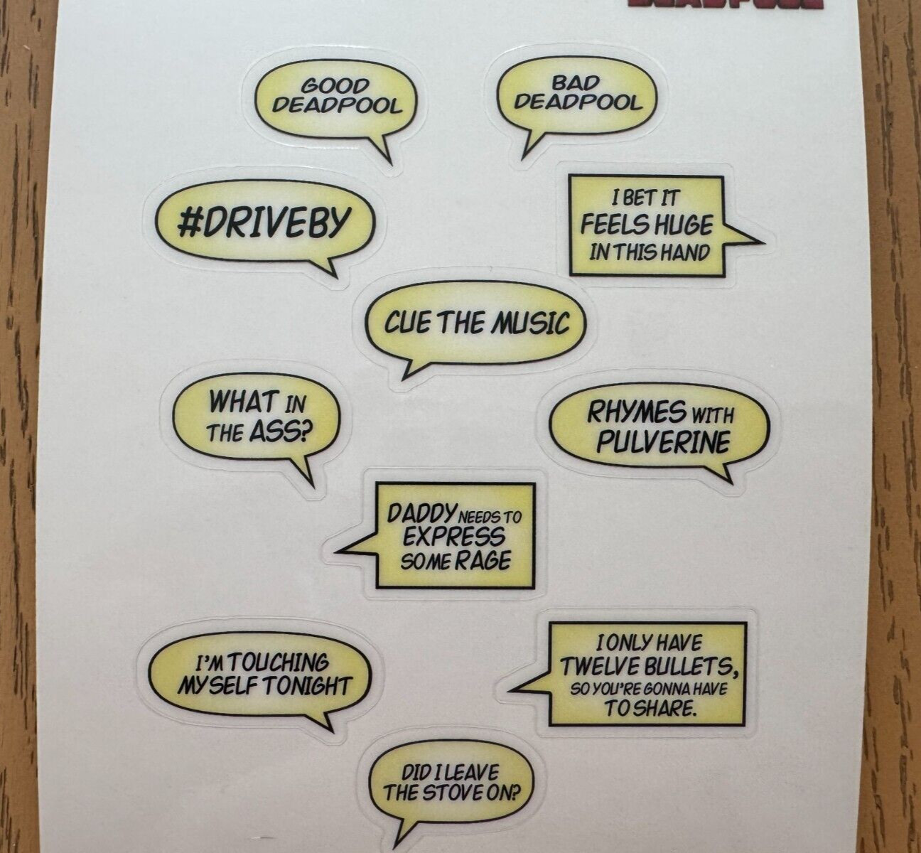 Deadpool Sticker Decal Sheet New Speech Text Balloon Bubble Marvel Fox 2018