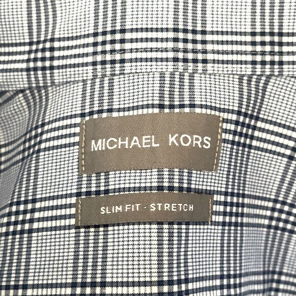 Michael Kors Men's Blue Plaid Slim Fit Button Down Dress Shirt L 16.5 34/35 EXC
