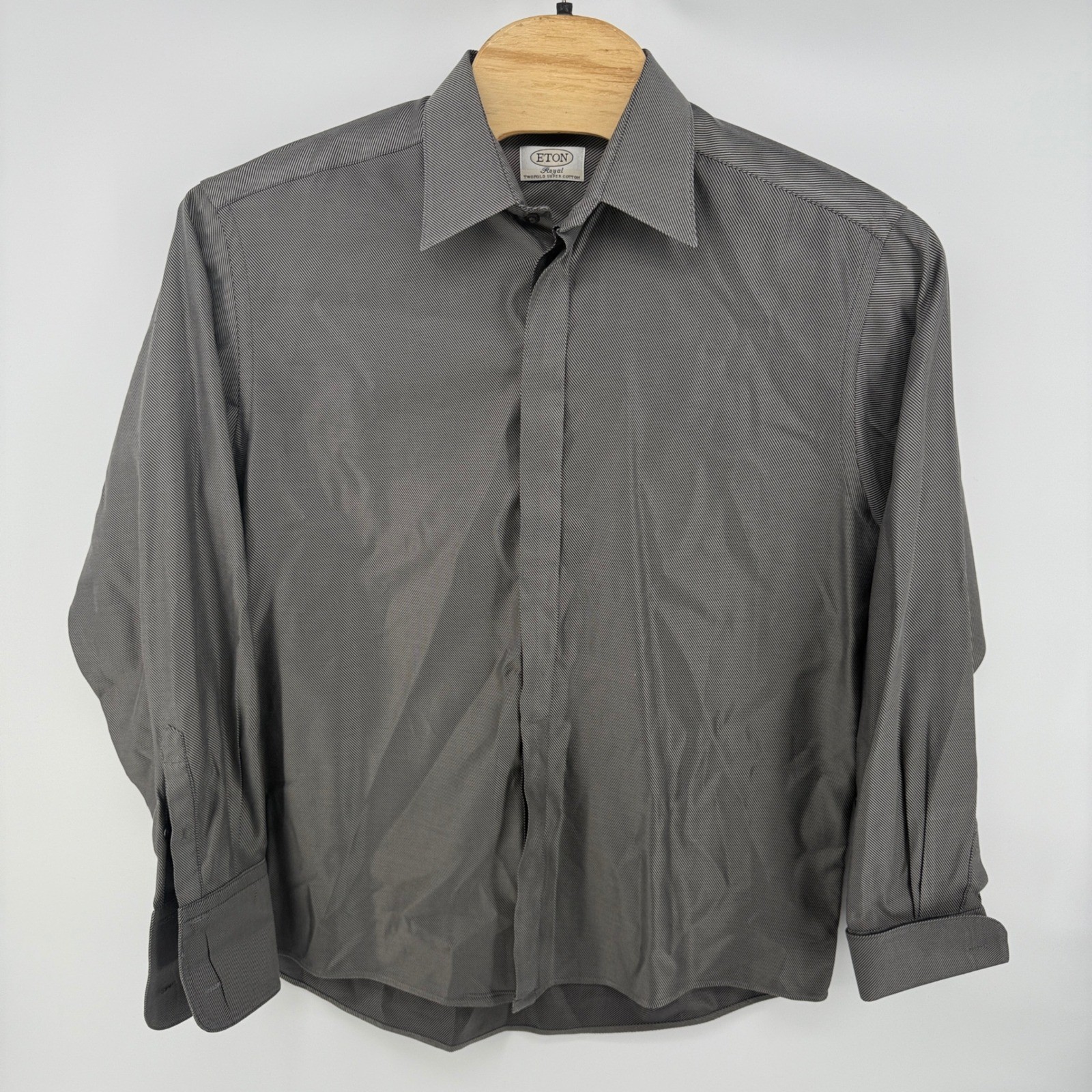 как выглядит ETON Royal Dress Shirt Men 43 17 Twofold Super Cotton French Cuff Striped фото