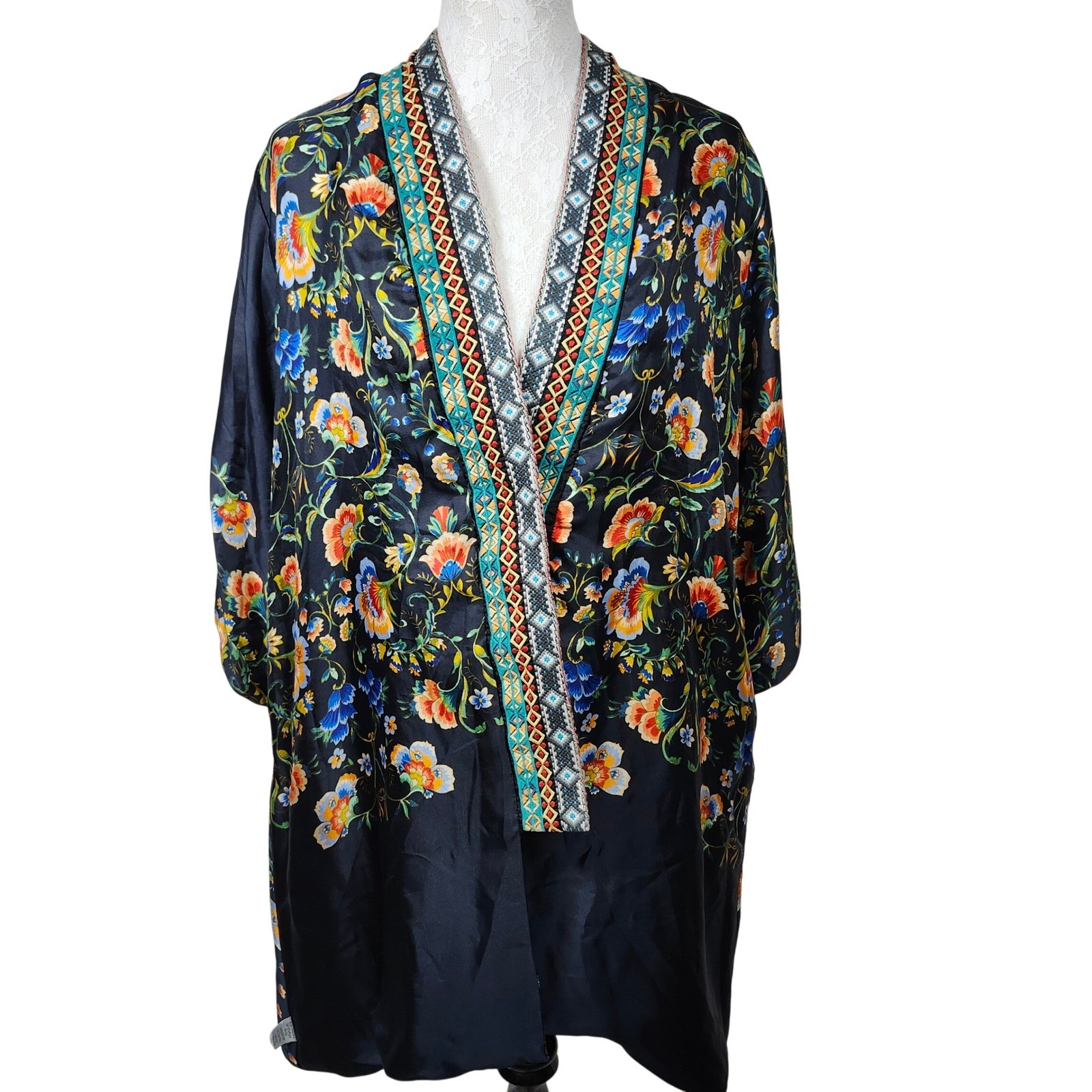 Johnny Was Reversible Silk Blend Kimono Jacket Floral Velvet Trim XS