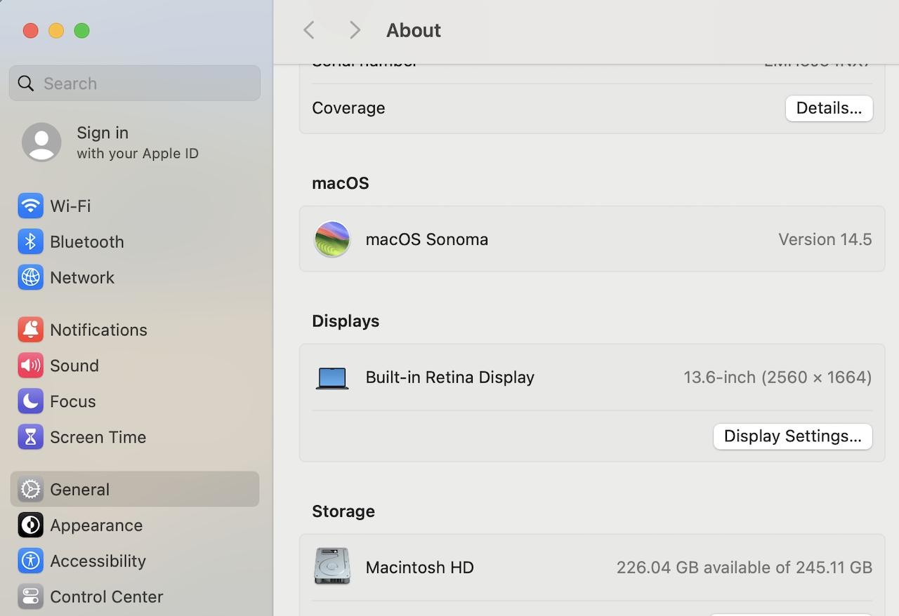 Операционная система: macOS 14.0, Sonoma