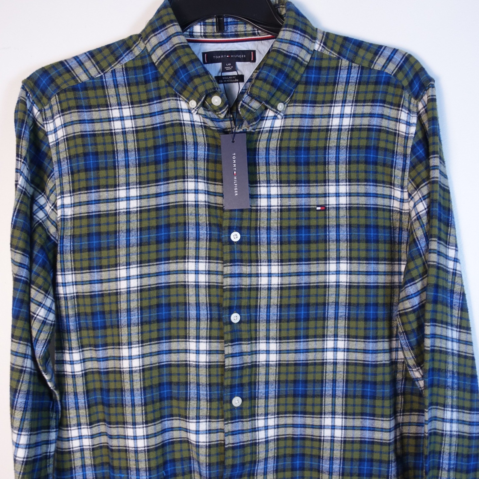 как выглядит Tommy Hilfiger Men Regular Fit Plaid Flannel Button Down Shirt Size Large NWT фото