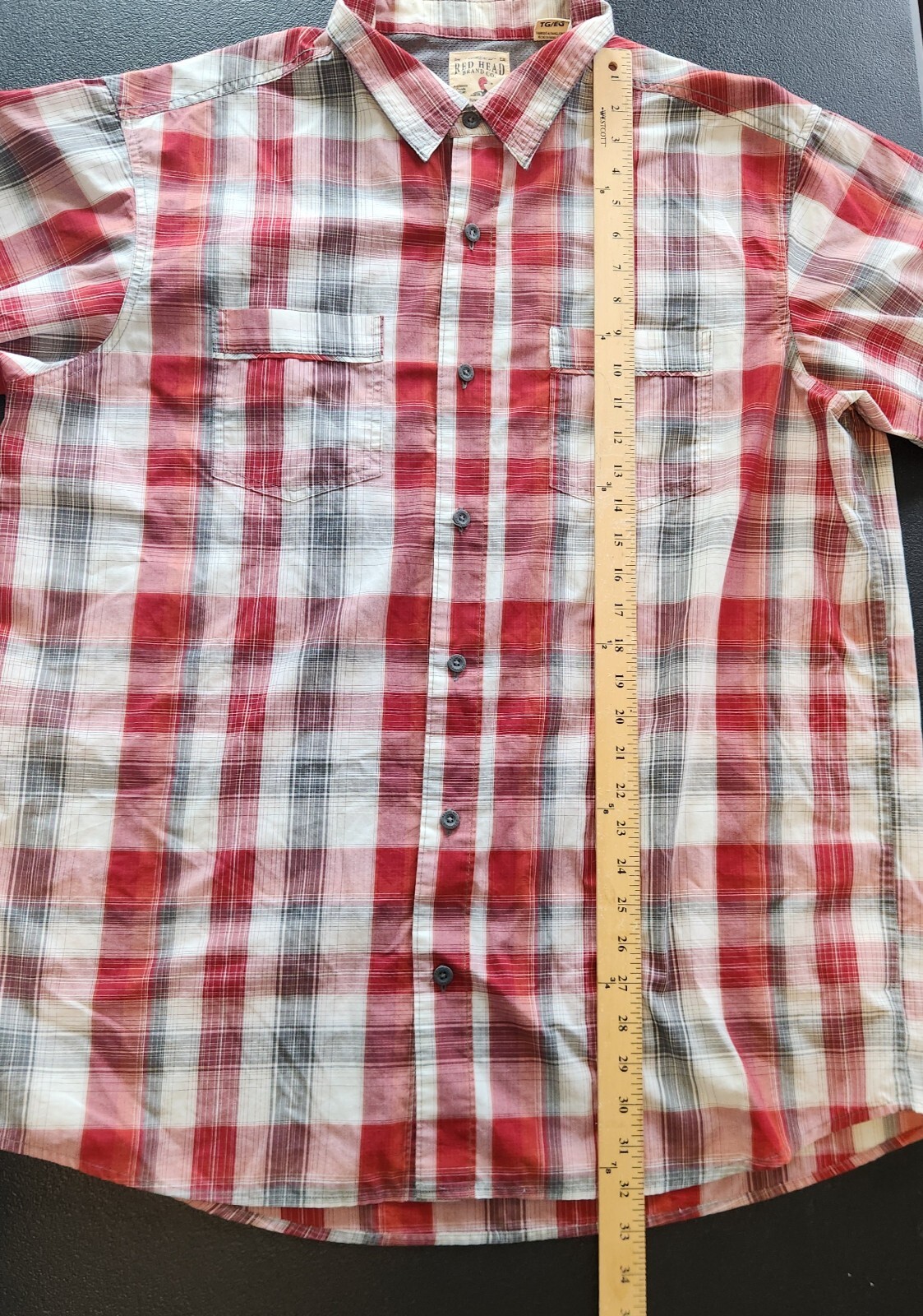 как выглядит Red Head Plaid Shirt Short Sleeve Button Up Red White Gray Outdoors Mens XL фото