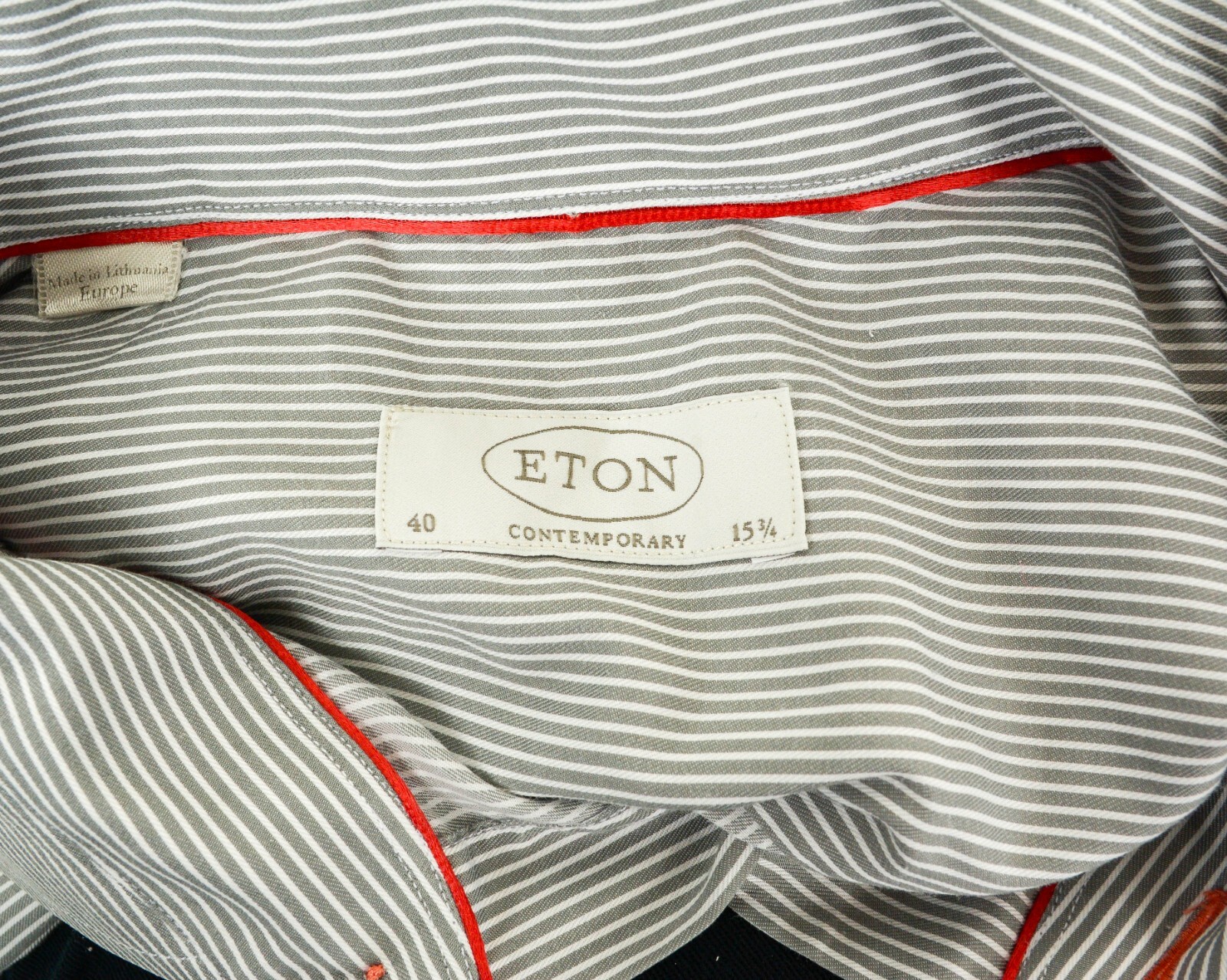 ETON Contemporary Men Cotton Shirt 15 3/4 Size 40 Grey Formal Pinstriped Casual
