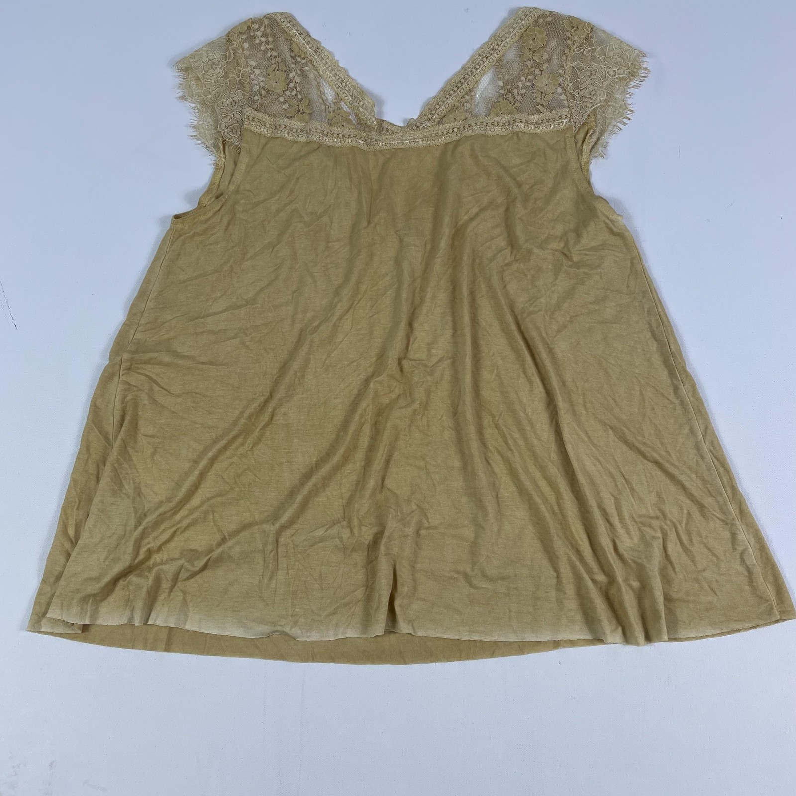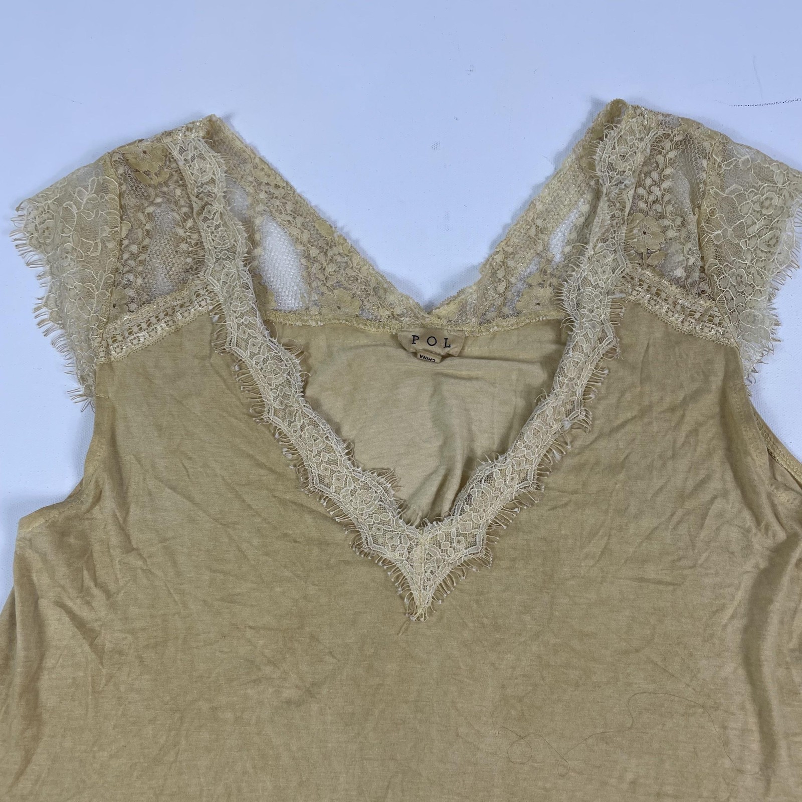 Anthropologie POL Tank Top Womens Small Beige Lace Trim V-Neck Stretch Camisole