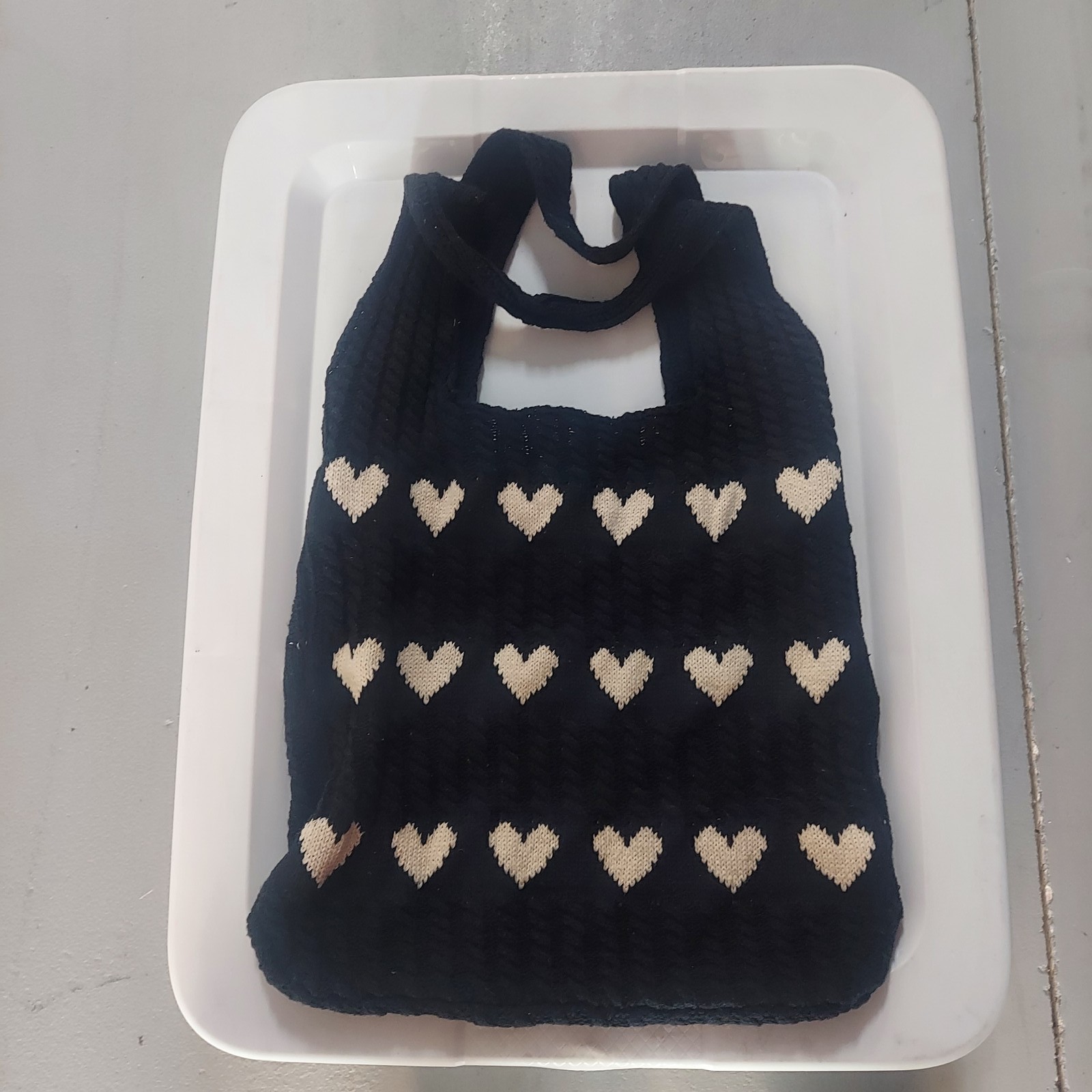 Knitted Heart Pattern Tote Bag Black Beige Shoulder Bag Aesthetic Y2K Accessory