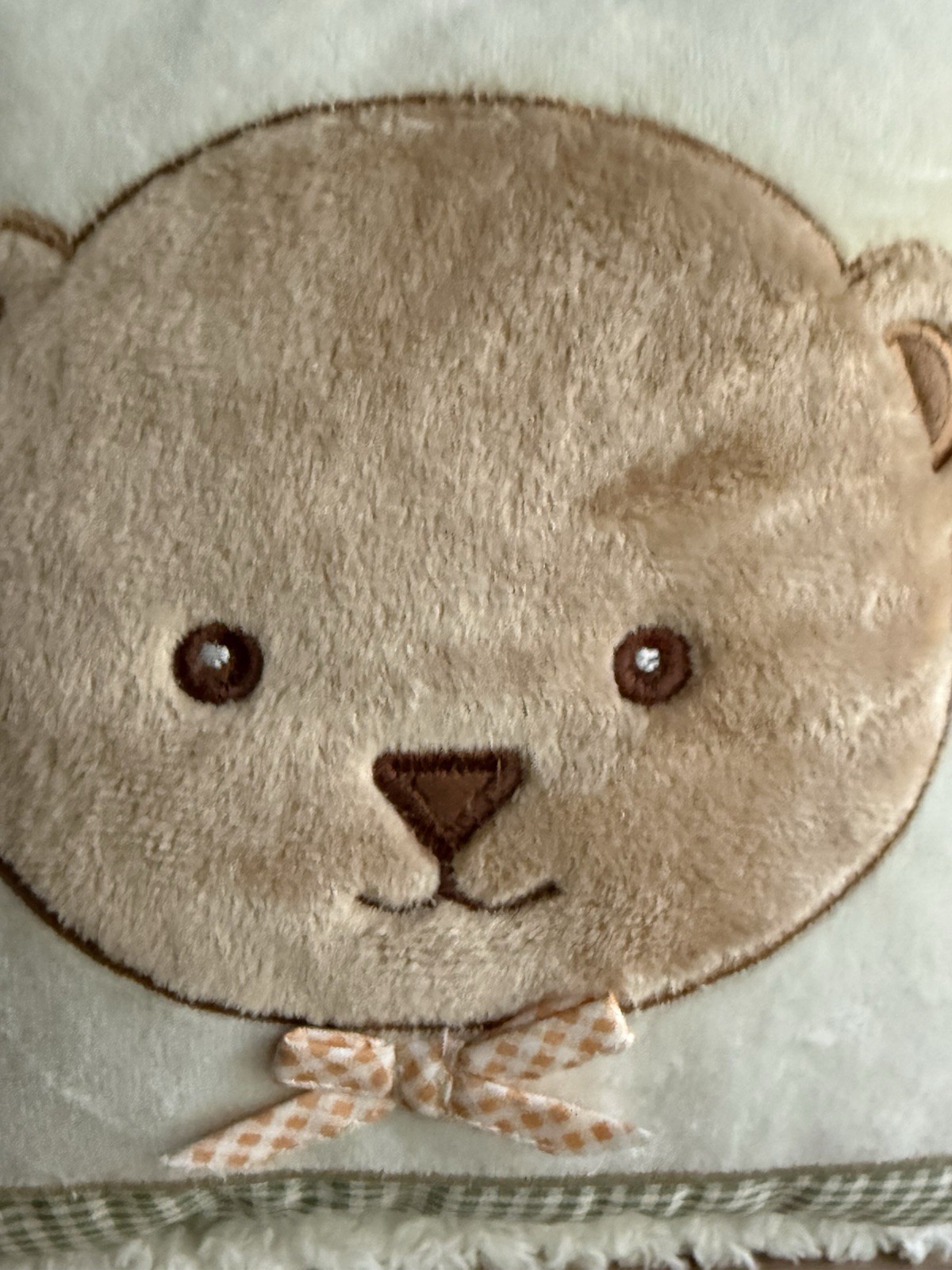 Lambs Ivy Baby Pillow Soft Brown Bear Green Gingham Small Decorative Nursery