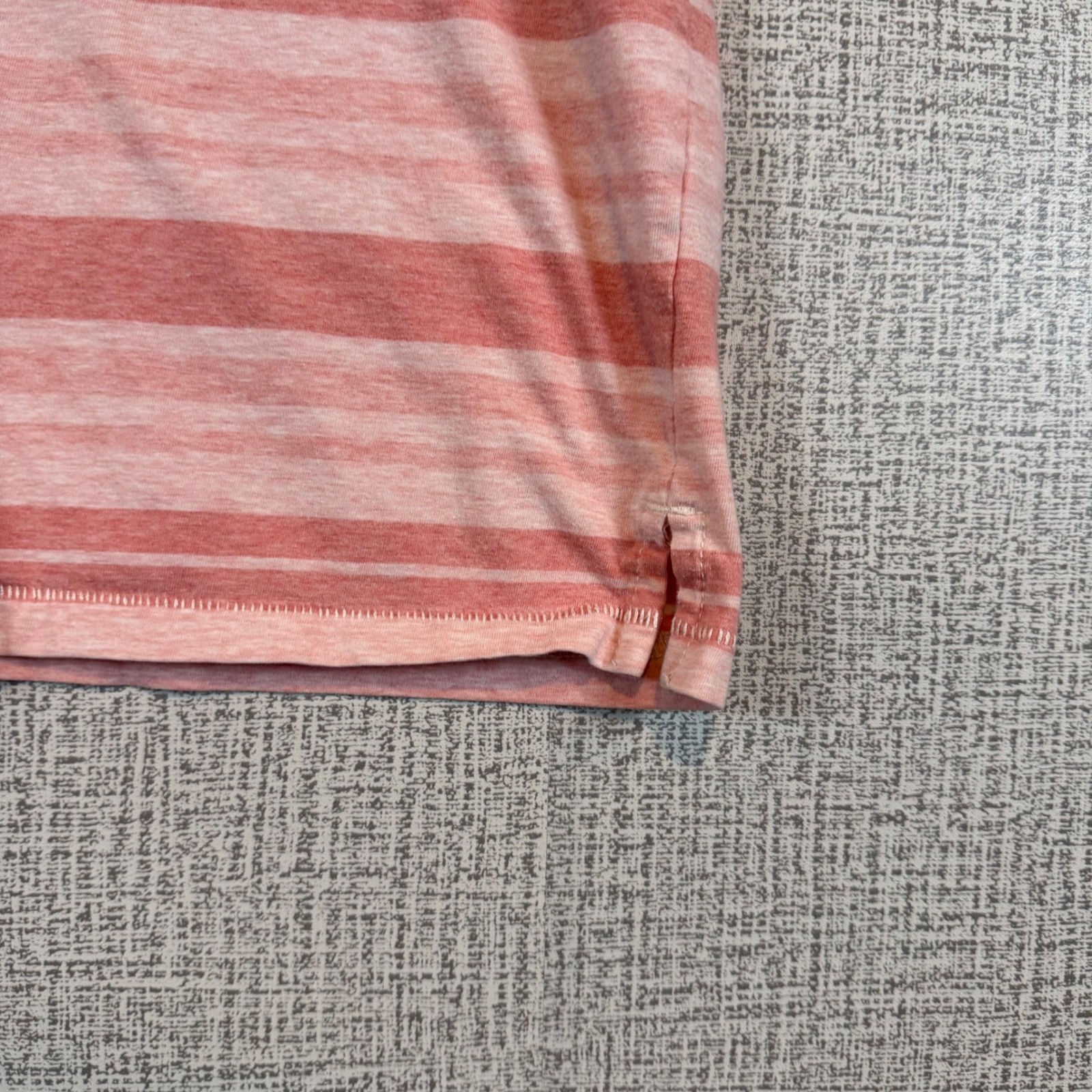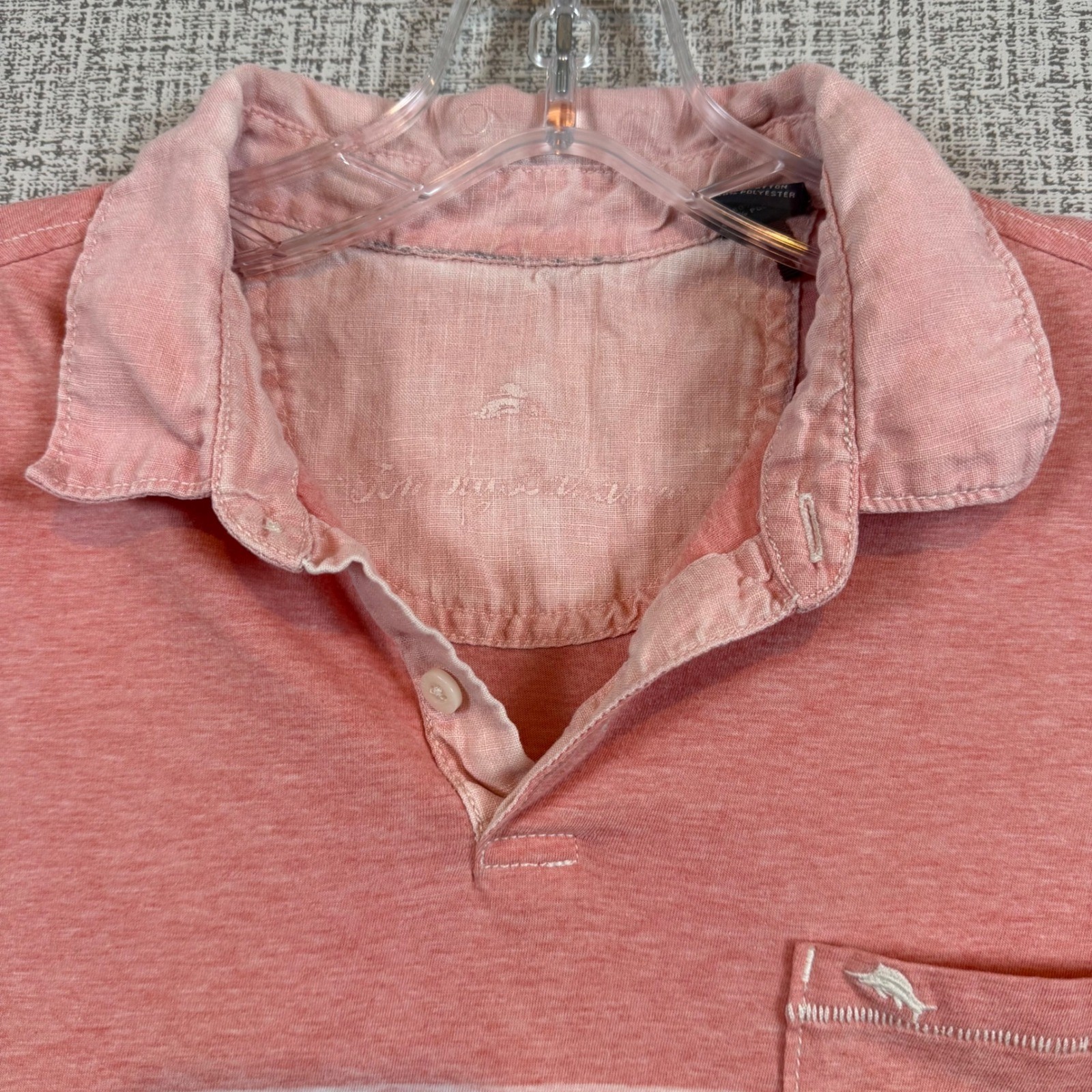 Tommy Bahama Men Medium Coral Striped Short Sleeve Polo Shirt Marlin Logo Cotton