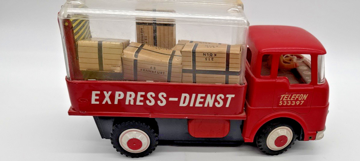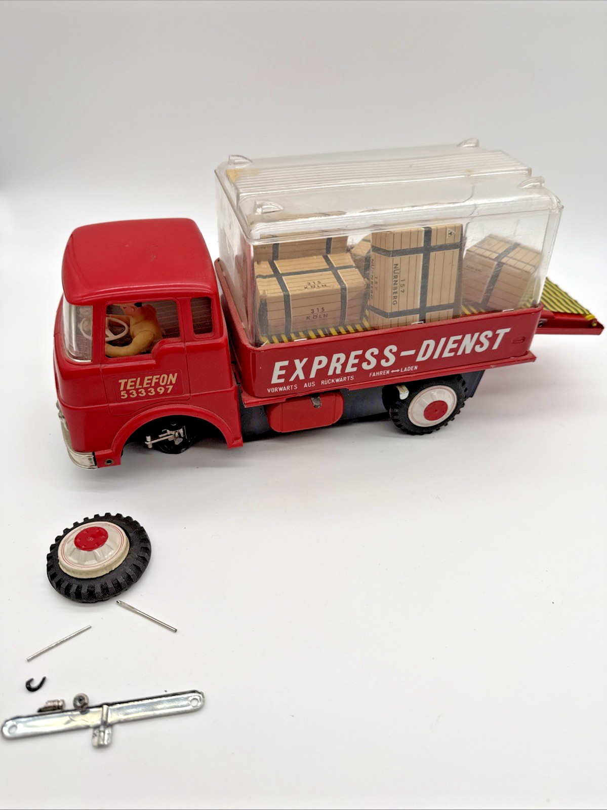 VTG Deutshe Tin Litho Express Friction Power Box Truck Battery Conveyor READ