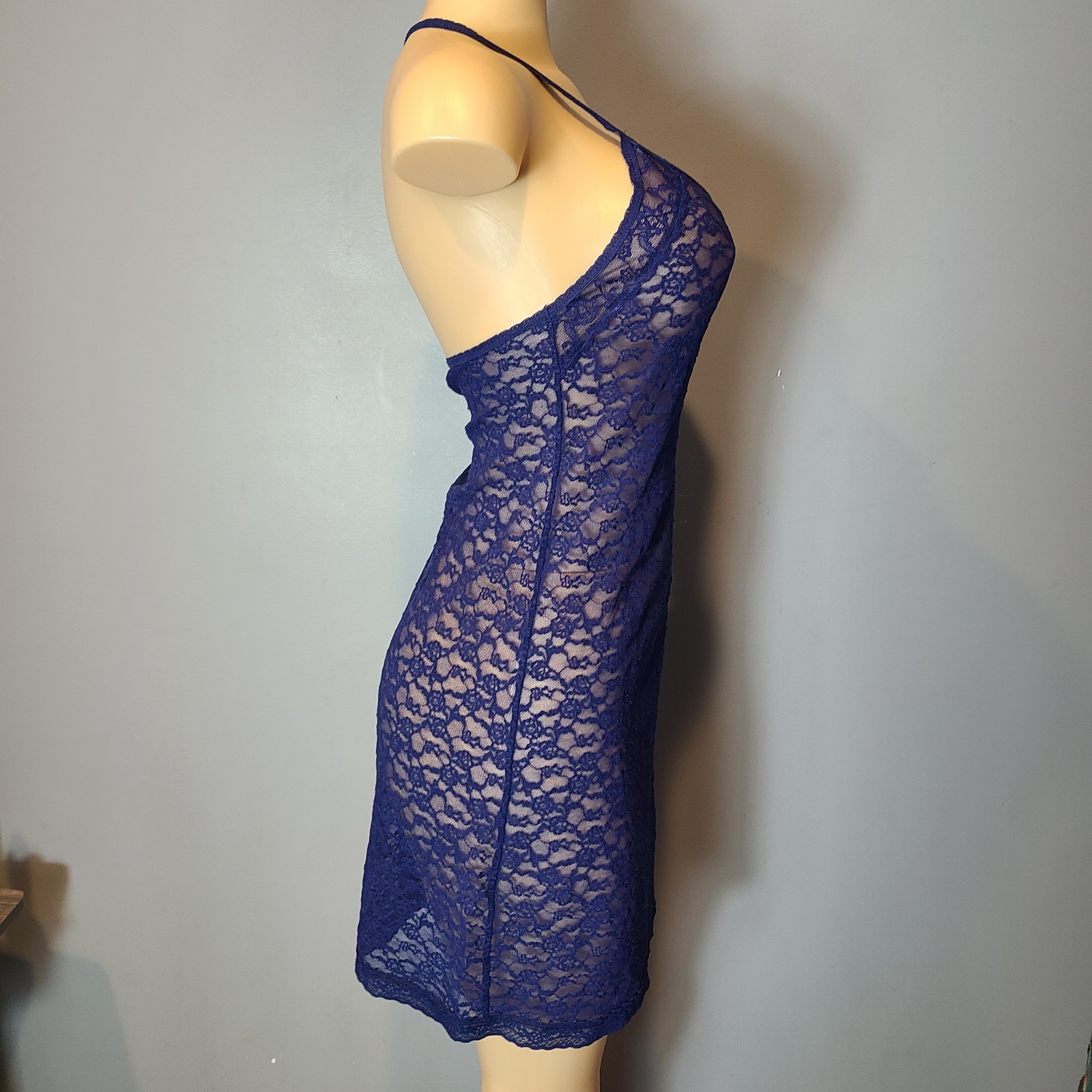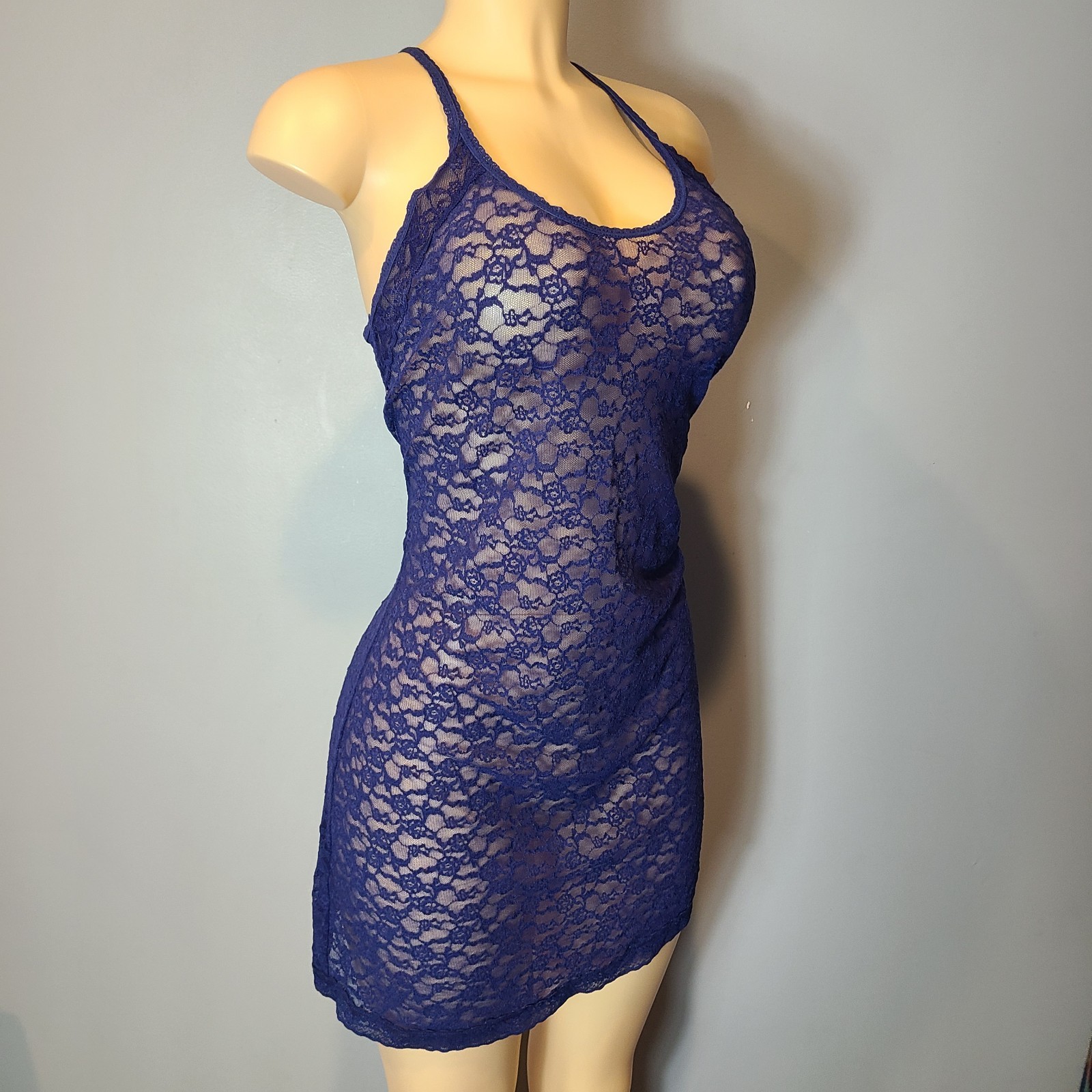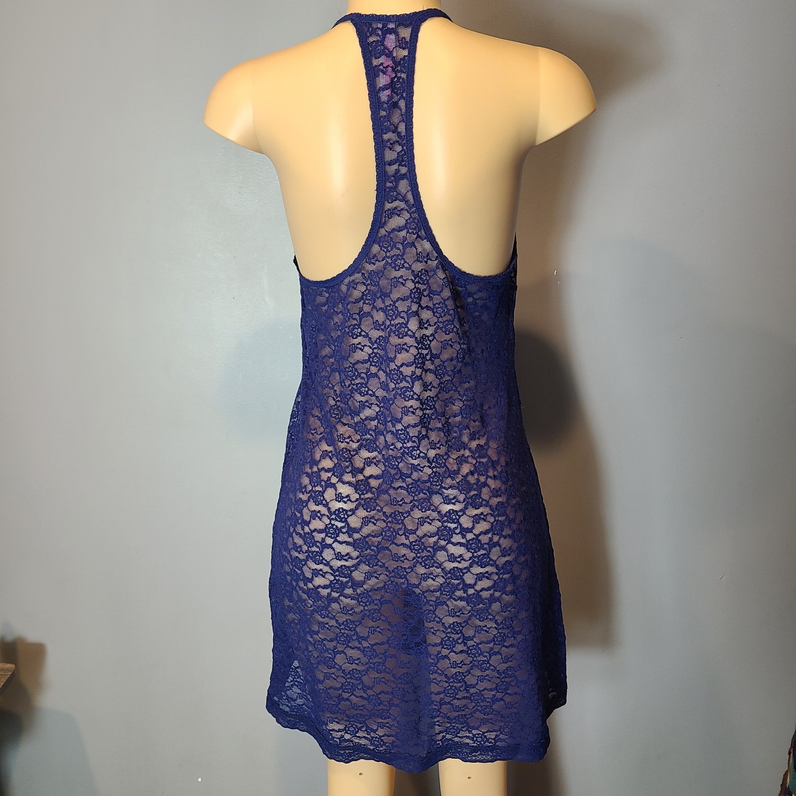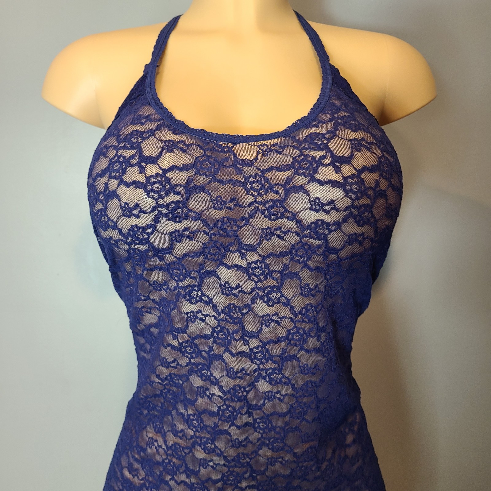 Blue Victoria's Secret sheer lace lingerie nightie teddy dress negligee size L