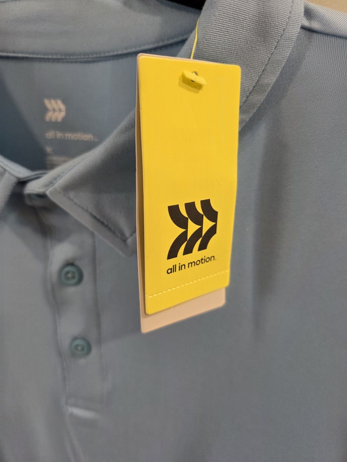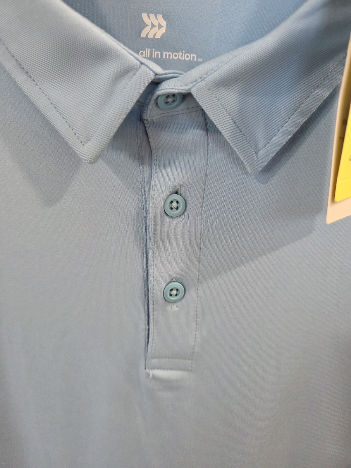Men's All In Motion Moisture Wicking Polo No Roll Collar NWT XXL Powder Blue