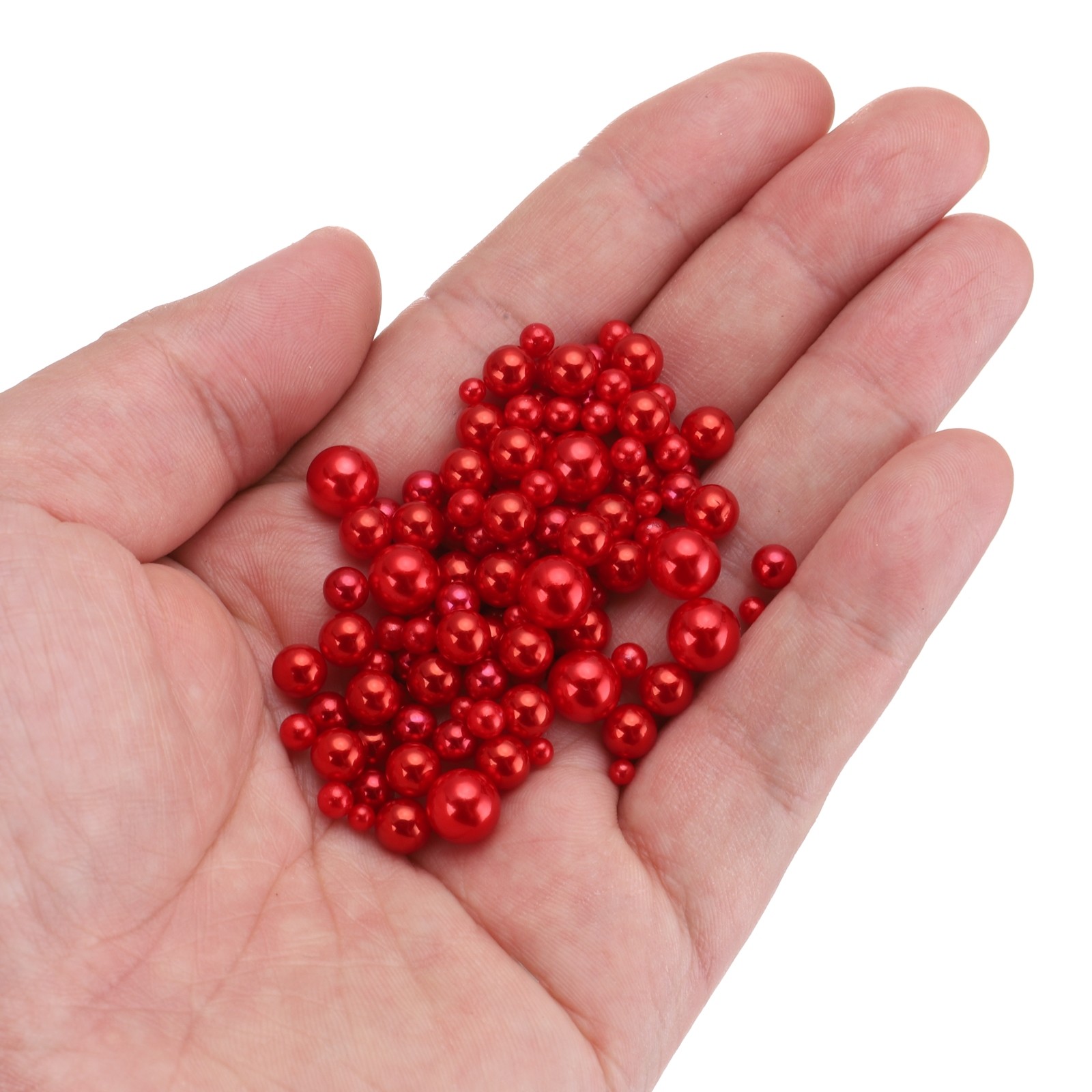 как выглядит 800 Pcs Faux Pearl for Crafting 3-8mm No Hole ABS Round Pearls Beads Red фото