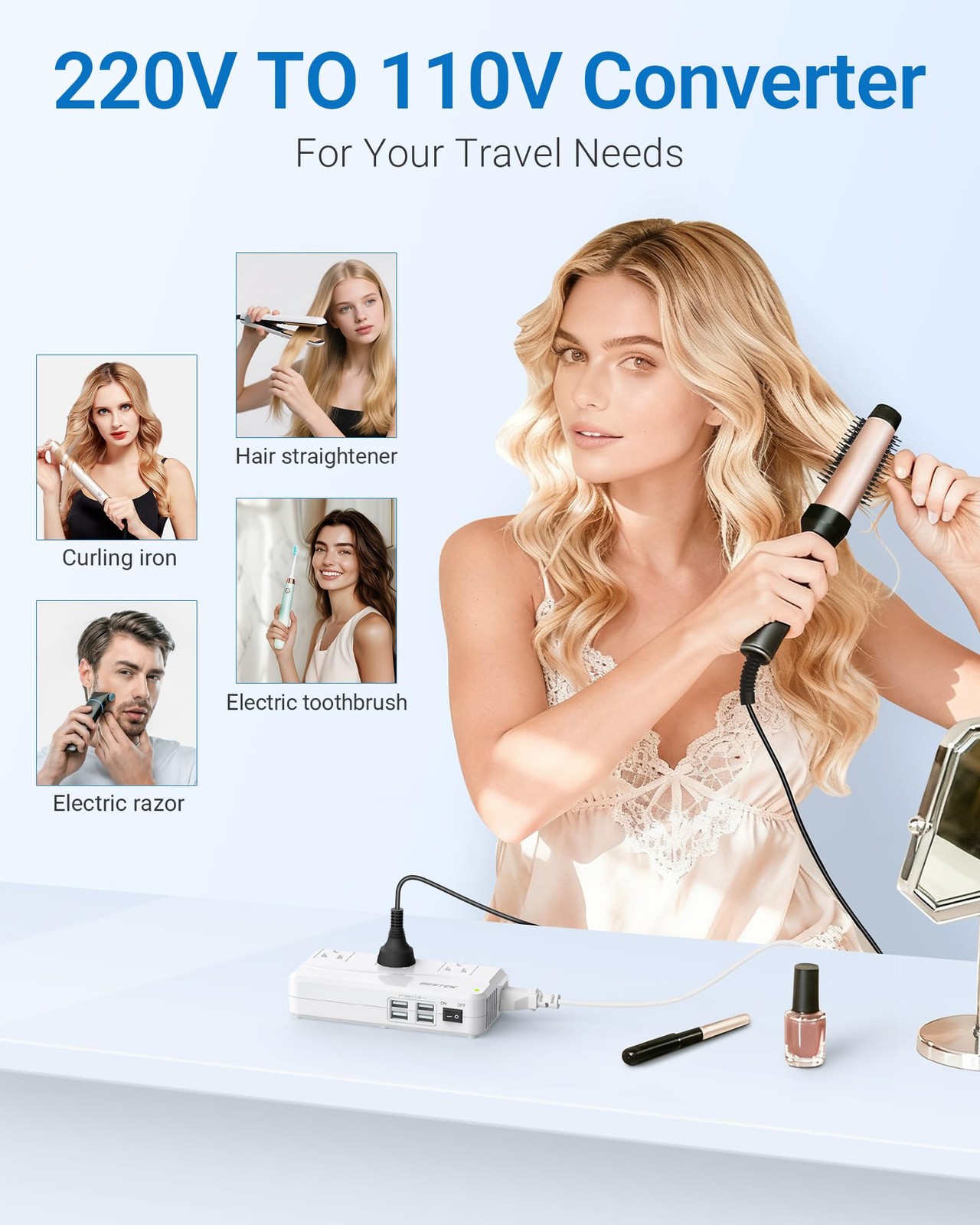 BESTEK Universal Travel Adapter 100-220V to 110V Voltage 03 UK Plug White