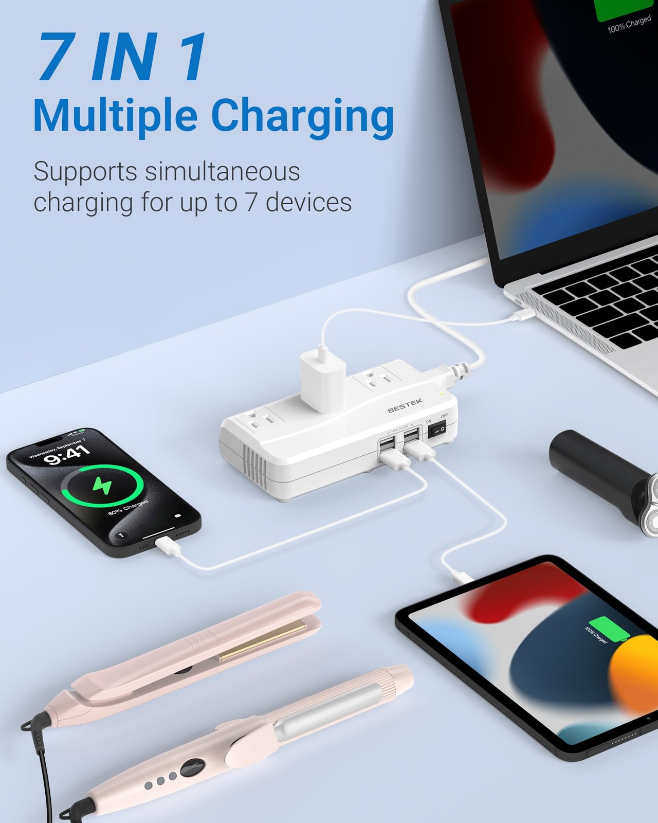 как выглядит BESTEK Universal Travel Adapter 100-220V to 110V Voltage 03 UK Plug White фото