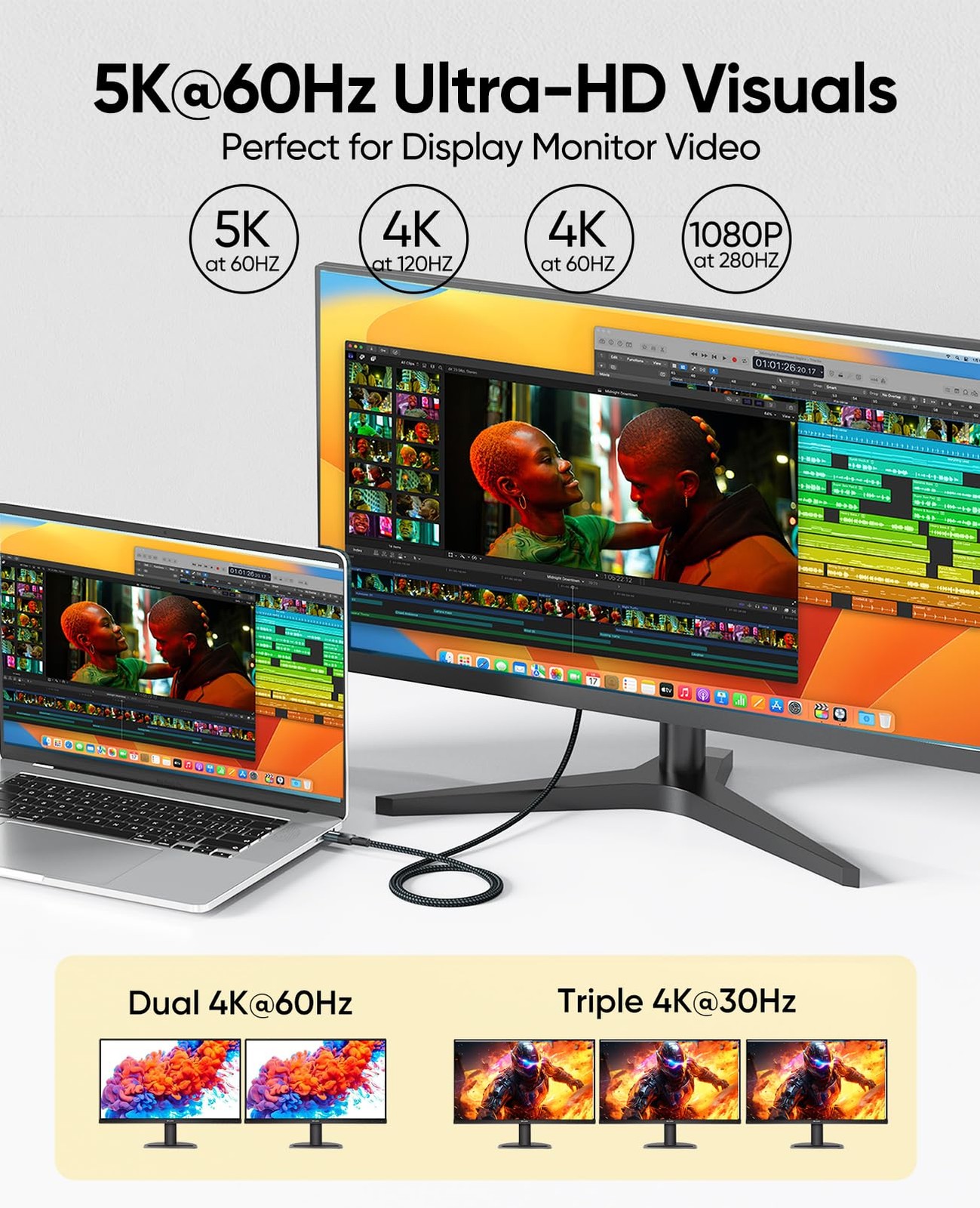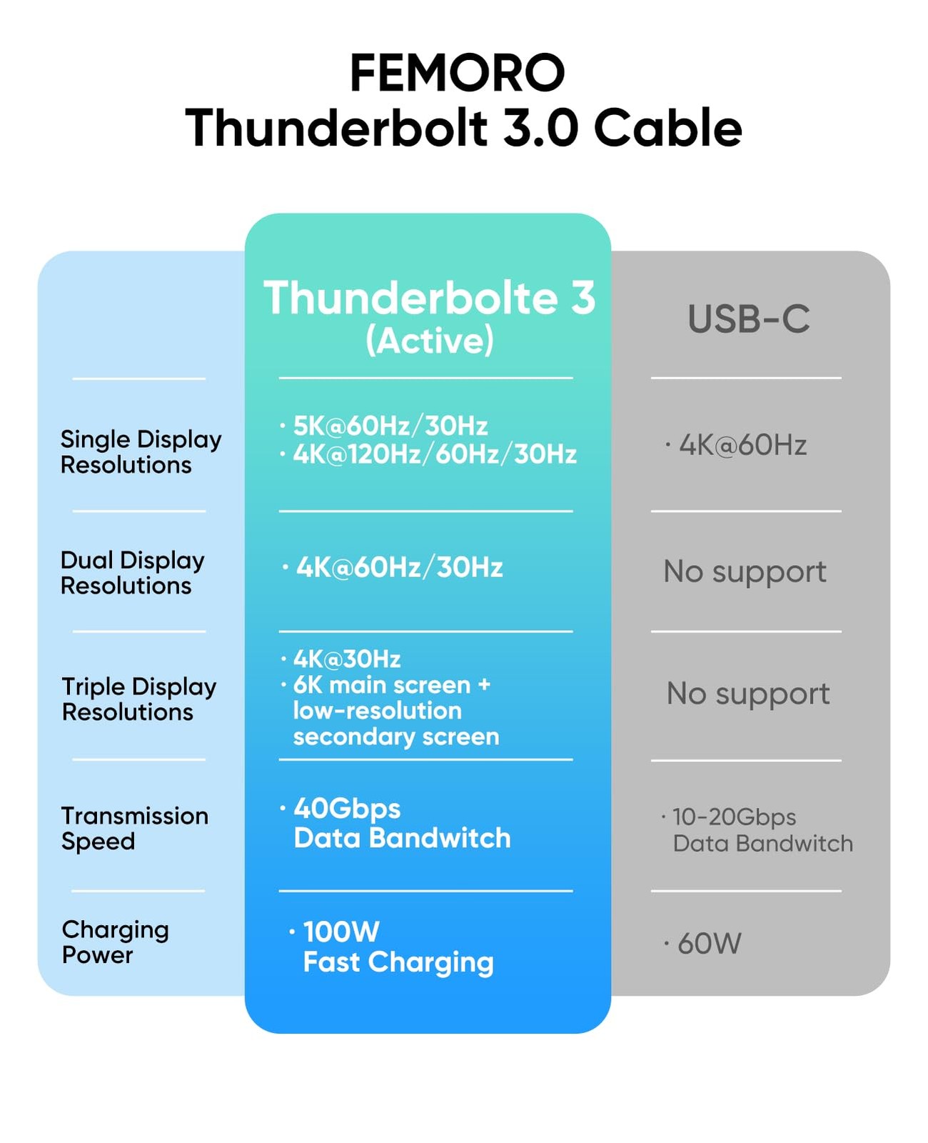 Thunderbolt 3 Cable 3ft, 40Gbps Data Transfer/ 100W PD/ 5K 60Hz 3 Feet, Grey